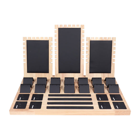 Natural Wood & Leather Necklace, Ring, Earring, and Charm Jewelry Set Display