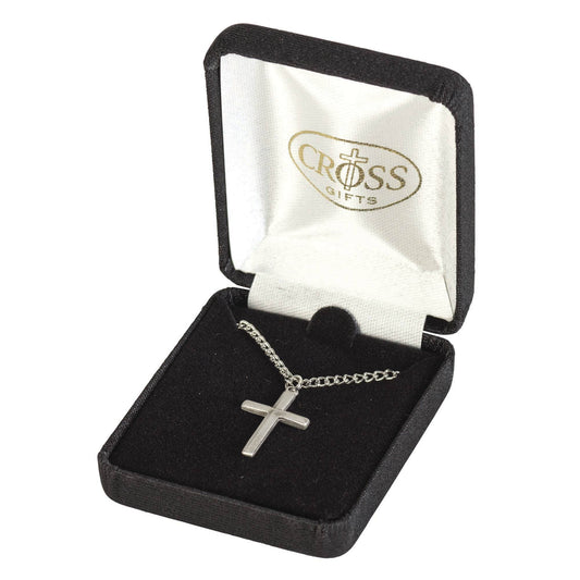 NK BEVEL CROSS PEWTER 18" STNLS STL CHN