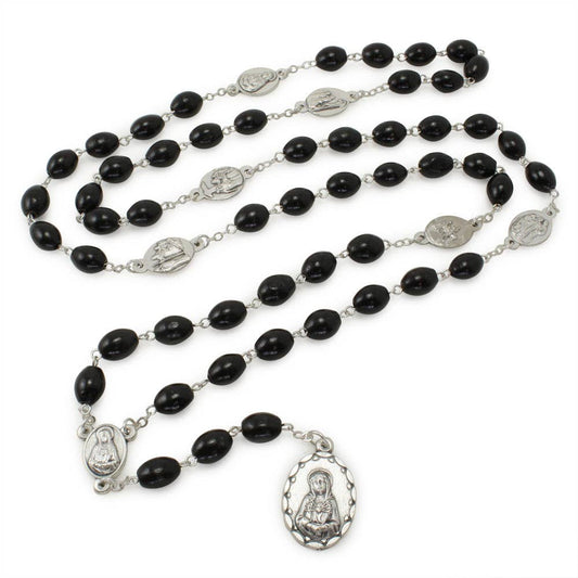 Seven Sorrows Chaplet Rosary Black Wooden Beads & Pouch