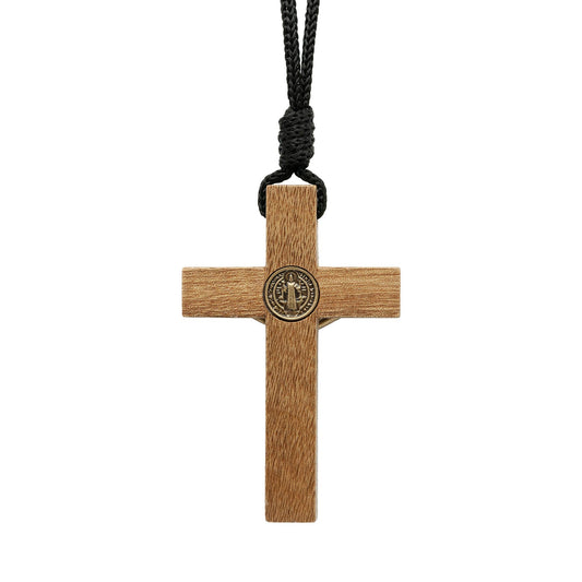 St. Benedict Wooden Crucifix Necklace 2.75"
