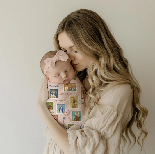Ave Maria Post Muslin Deluxe Catholic Blue Swaddle
