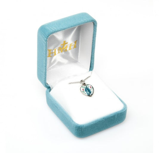 Sterling Silver Blue Enameled Miraculous Heart w/Flowers 16" Chain