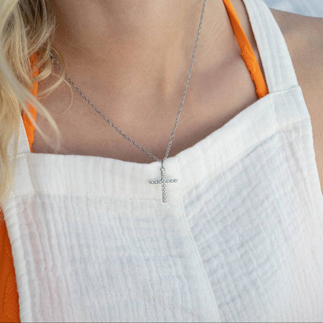 Turn sunshine and sentiment into effortless add‑ons with our Pearl Beaded Cross Charm—an elevated staple your customers will reach for all summer long. Glossy 18K gold‑tone stainless steel frames twelve luminous micro‑pearls, creating a fresh, coastal take on an iconic silhouette. Lightweight yet durable, it’s made to survive sunscreen, salt water, and long festival days without losing shine.