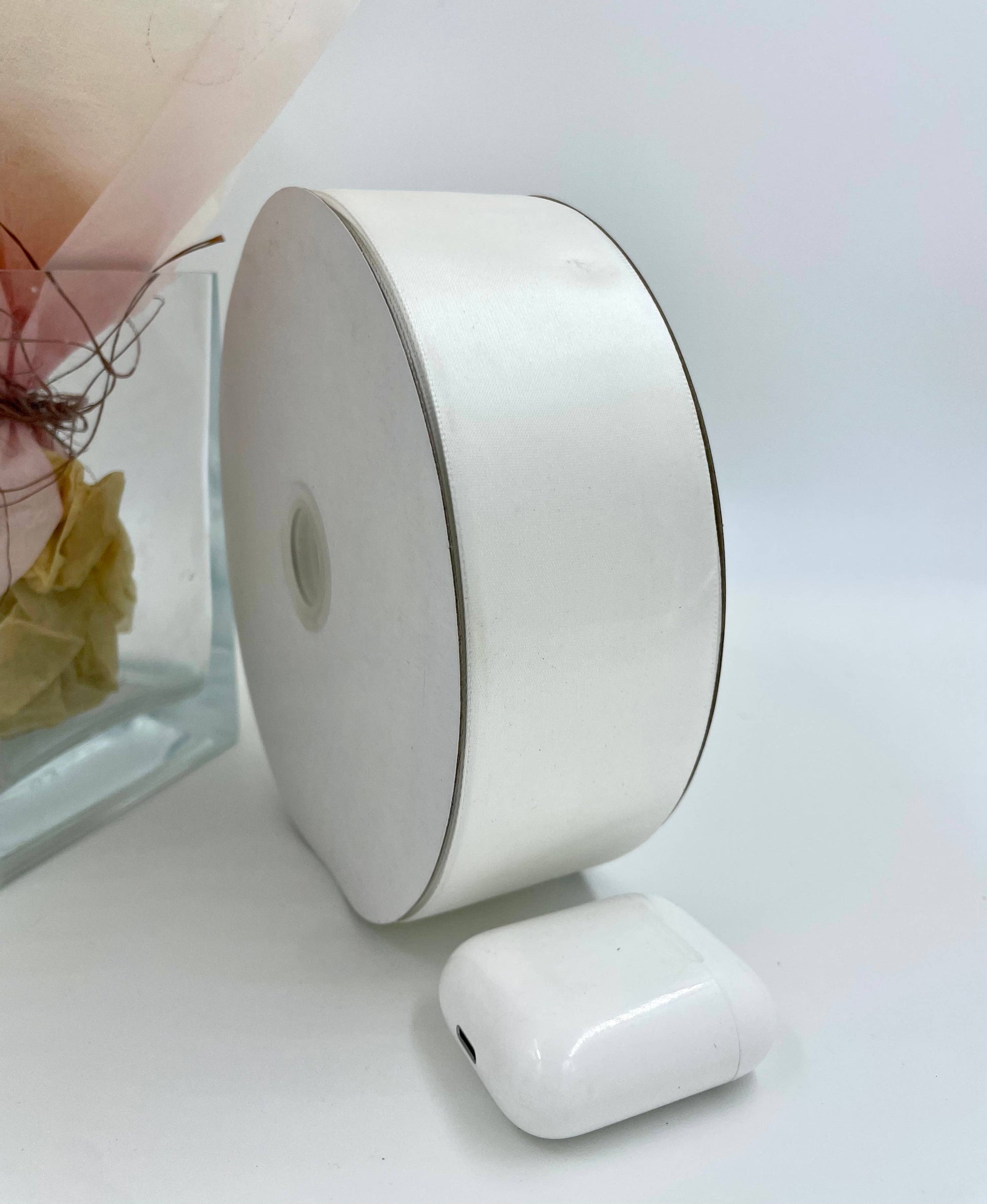 2 inch width comes in 100 yards by spool, 100% Polyester, fabric faced satin ribbons