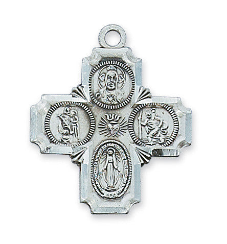 STERLING SILVER 4-WAY MEDAL WITH 20" STAINLESS STEEL CHAIN. INCLUDES DELUXE GIFT BOX