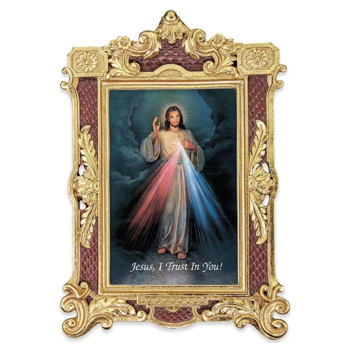 - Divine Mercy print comes under glass.