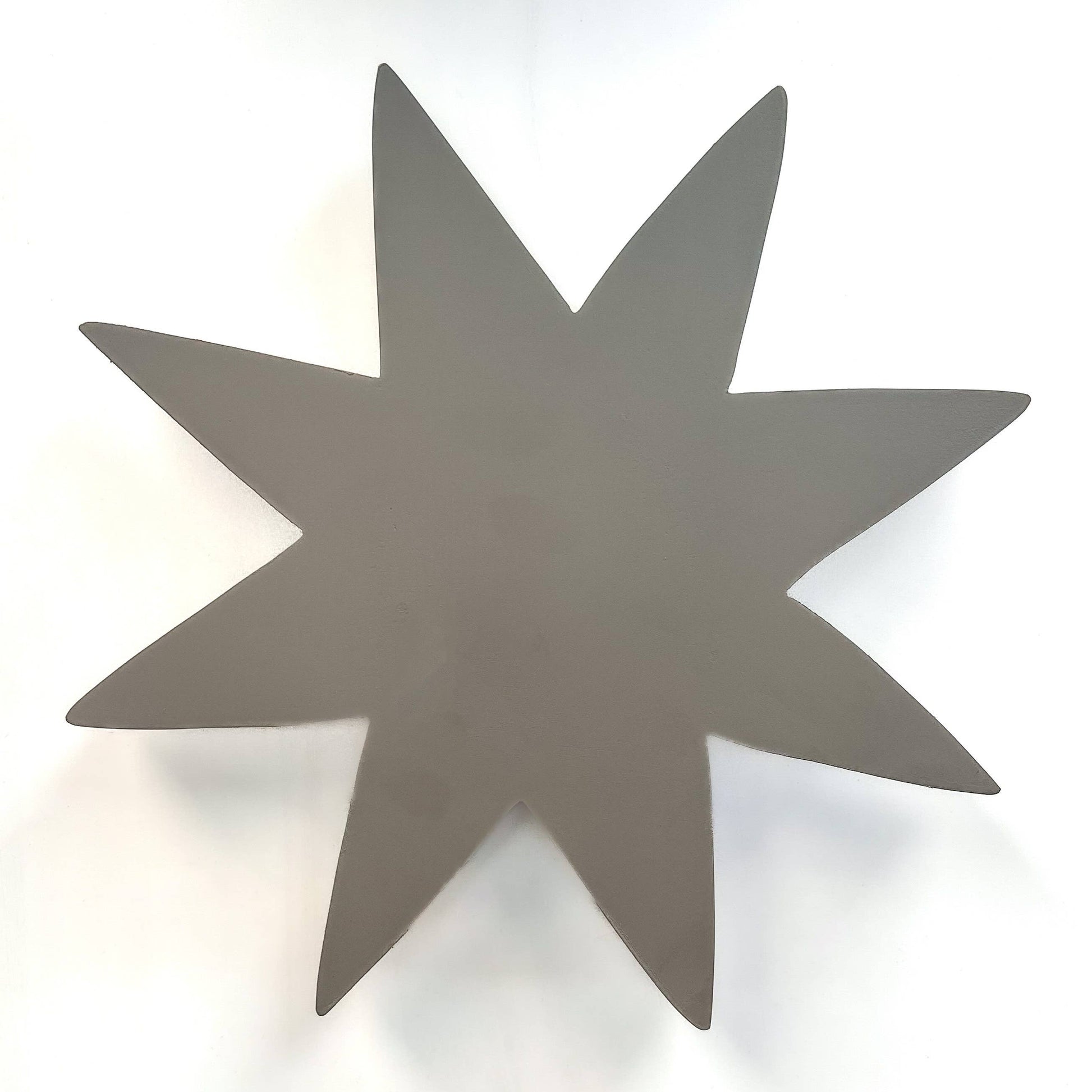 Count down the weeks to Christmas with this beautiful star shaped Advent candle holder! Made of MDF with metal accents and candle cups in silver enamel finish. 9" diameter. Complete with set of four 10” taper candles, three purple and one pink.