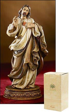 These striking figures were inspired in the carving style and in the color tones by the old masters of northern Italy, where the crafting of sacred art and sculpture is a way of life. The beautiful faces, traditional colors, and the marvelous attention to detail will capture the buyer's heart. Each is securely but elegantly packaged in a Milagros Signature Bellavista gift box.