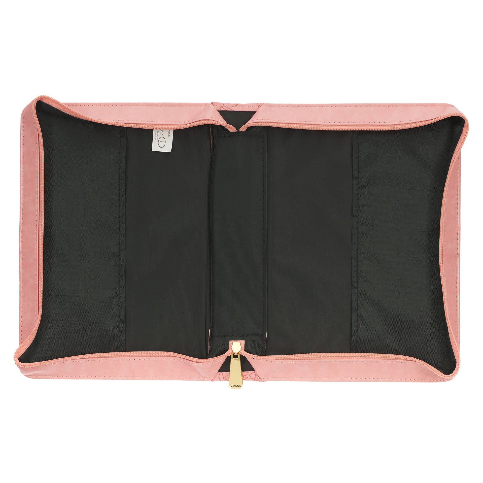 Protect your precious Bible in a stylish case with a beautiful design when you choose the Strength and Dignity Rose Pink Faux Leather Bible Cover. This elegant scuff-resistant Bible case will protect your Bible for years to come.