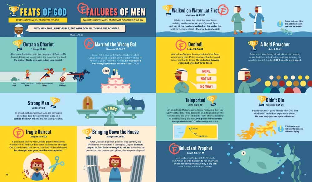 (Hardcover)  Boring vs. the Bible? No contest! Ding, ding, ding! Ladies and gentlemen, welcome to "Bible Infographics for Kids Vol. 2," where we're going to compare some of the most AWESOME opposites from God's Word and witness amazingly EPIC battles between good and evil. See these fierce foes square off in the infographic octagon: -Light vs. Darkness—and why you'll never see them in the same place -Angels vs. Demons—both are powerful, but only one side will win in the end -Feats of God vs. Failures of Men—God did incredible things. Men? Not so much. -False gods vs. the One True God—separating the many pretenders from the only real contender. -Heaven vs Hell—hell is no joke. But neither is heaven. It will be seriously mind-blowing! And yes, we're going to explore more fun and quirky facts from God's Word and gain a bunch of Bible knowledge along the way. That's what infographics do. They make the most exciting book in the world come alive.