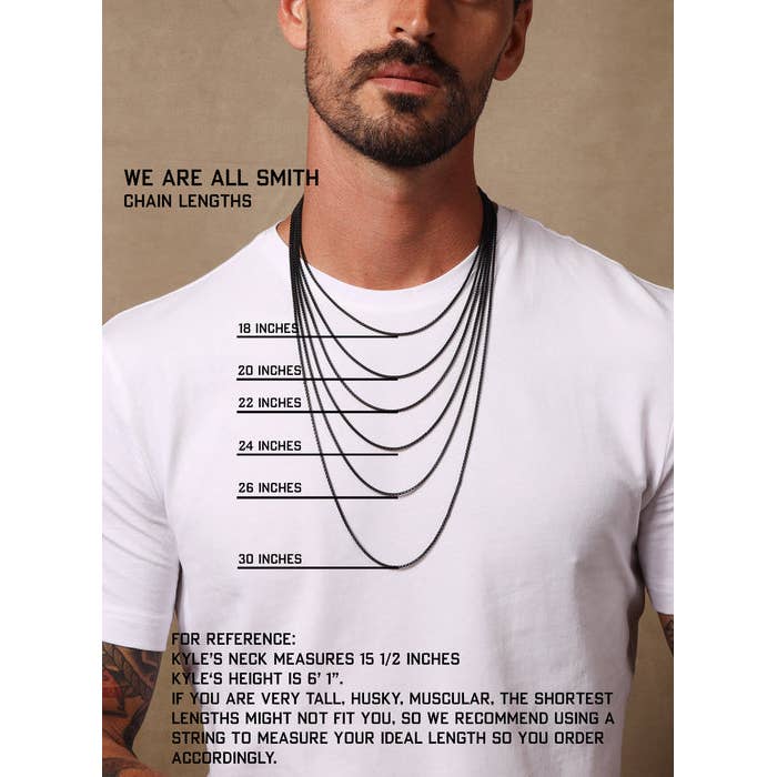 Men's Cross Necklace - Back Stainless Steel Medium Cross on Venetian Round Box Chain