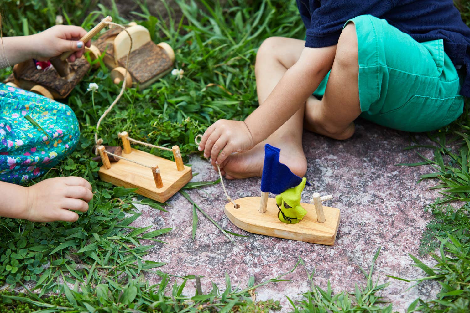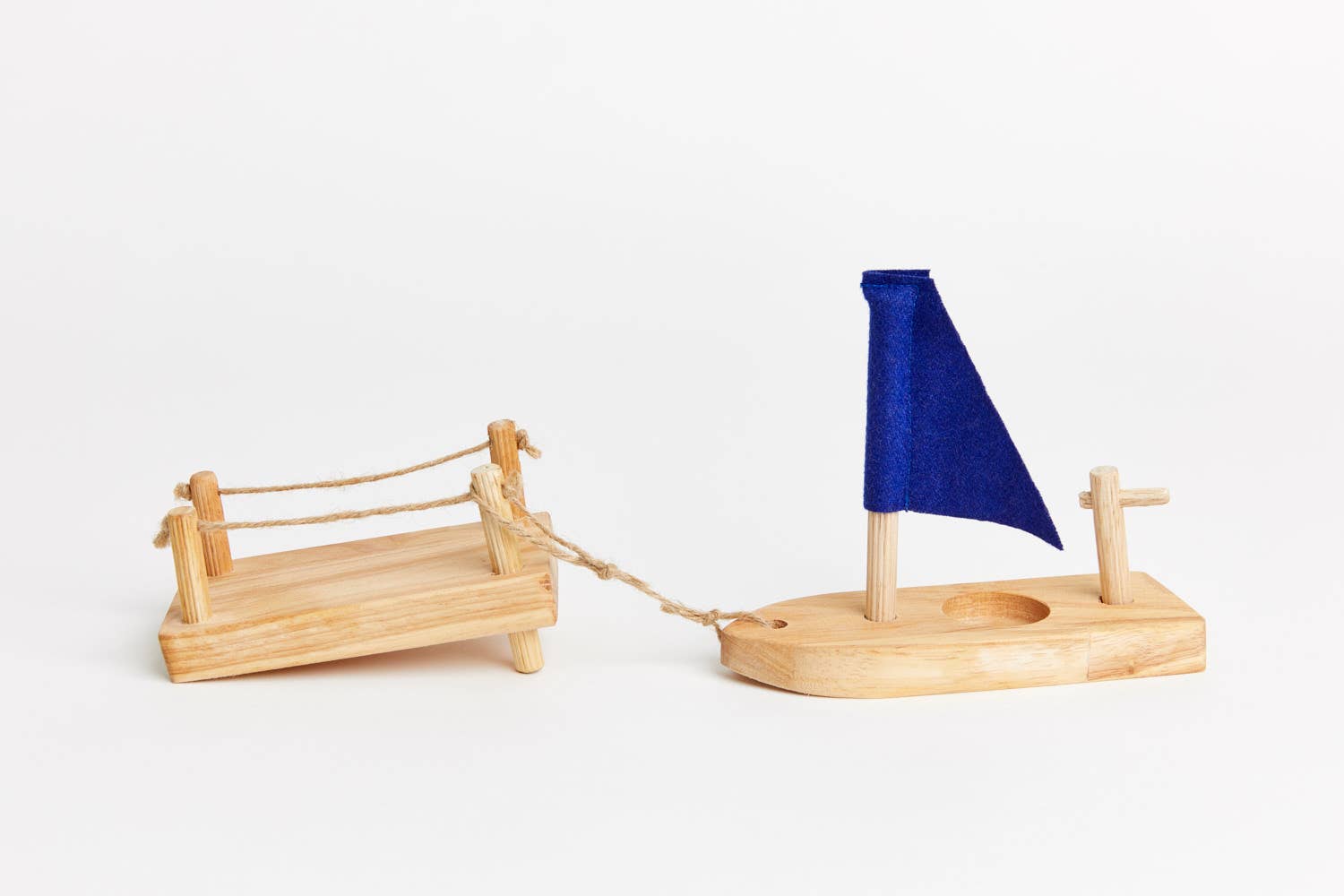 1/2" scale wood boat with sail and dock. Sail color can vary from the picture. Current stock has a navy blue sail. Through play, children explore their world and gather essential experiences necessary for their cognitive, emotional and physical development. Children need the chance to explore, ask questions, and to meet and play with other children. Role play, particularly with playmates they know and trust, is a chance for children to use their imagination, be inventive, develop social skills and grow in maturity.