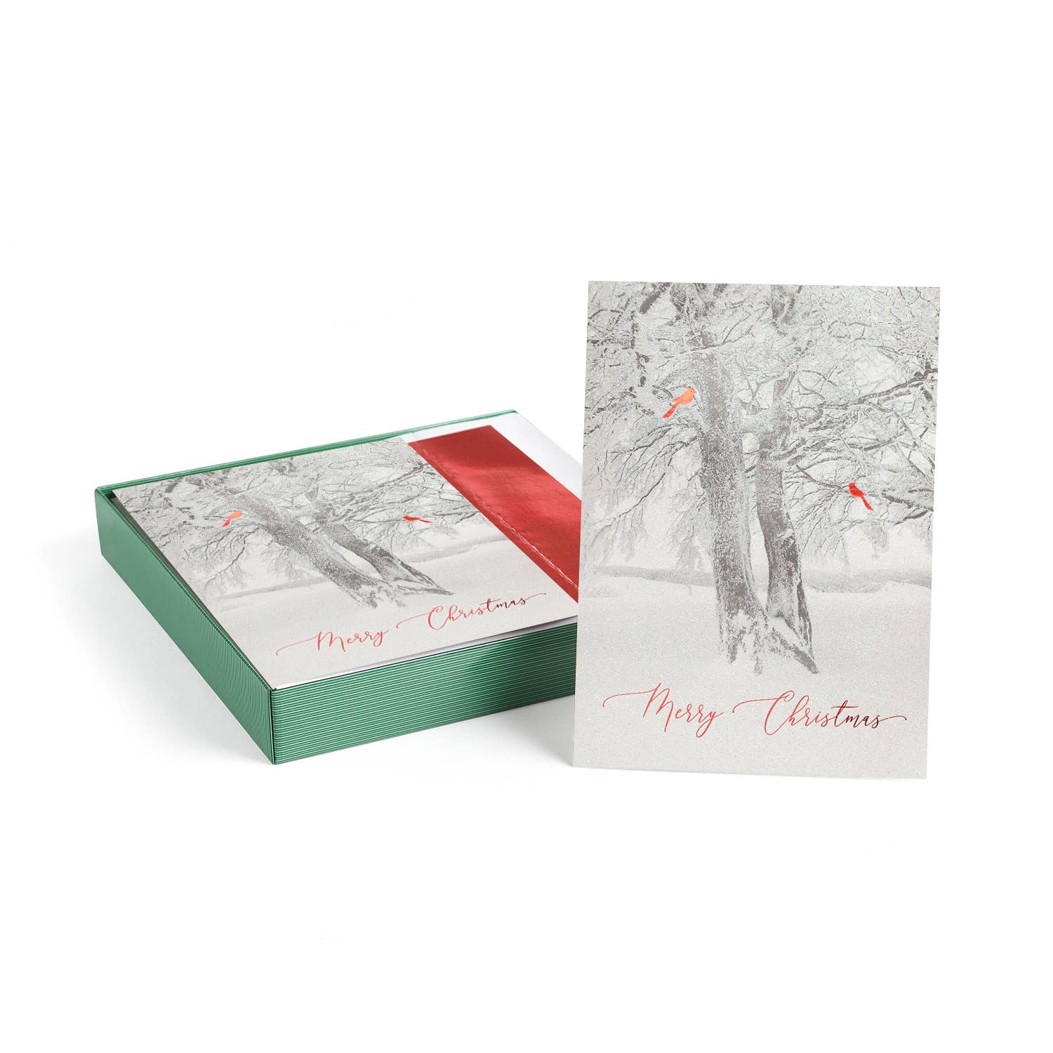 High-end design and finishes featuring pearl glitter, red foil and premium paper stock.