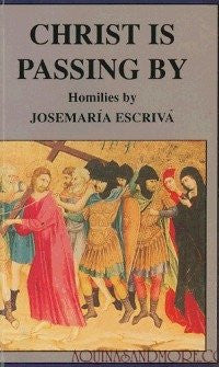 This lovely purse or pocket-size Christ Is Passing By is a compilation of Saint Josemaria Escriva's homilies based on the liturgical year. The cover art depicts Christ on the Way of the Cross. This is a translation of  Es Cristo Que Pasa.                                                   Christ Is Passing By This first published collection of homilies by Monsignor Josemaria Escriva ranges through the Church's liturgical year.  The teaching which it contains constantly reflects the connection which should exist between a Christian's most ordinary-and therefore most human-interests and the transcendence of God.  'Heaven and earth,' he says, 'seem to merge on the horizon.  But where they really meet is in your hearts, when you sanctify your everyday lives.'