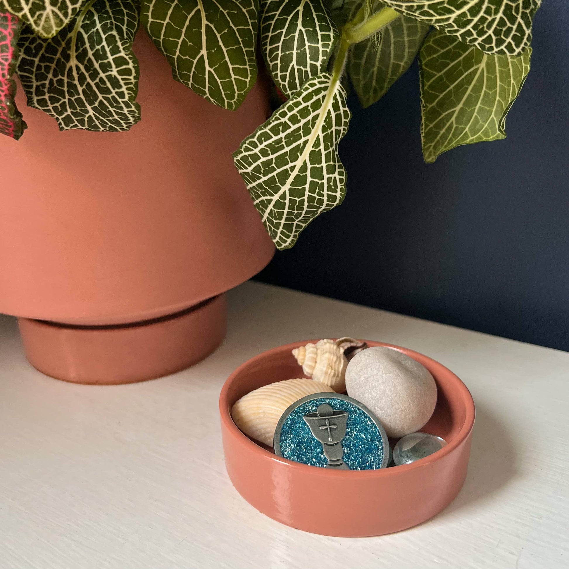 Bright finish, blue glitter epoxy w/chalice & a first communion blessing poly bagged.