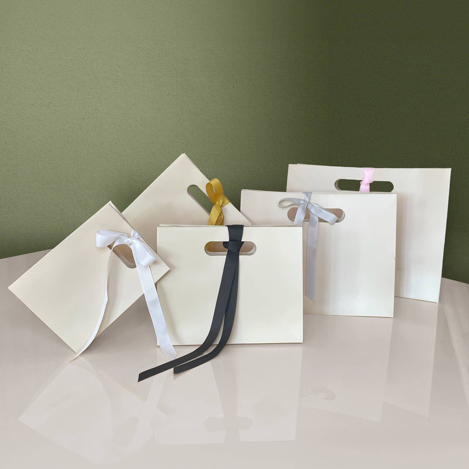 Cream Beige die-cut handle gift bag w/ free ribbon&tissue