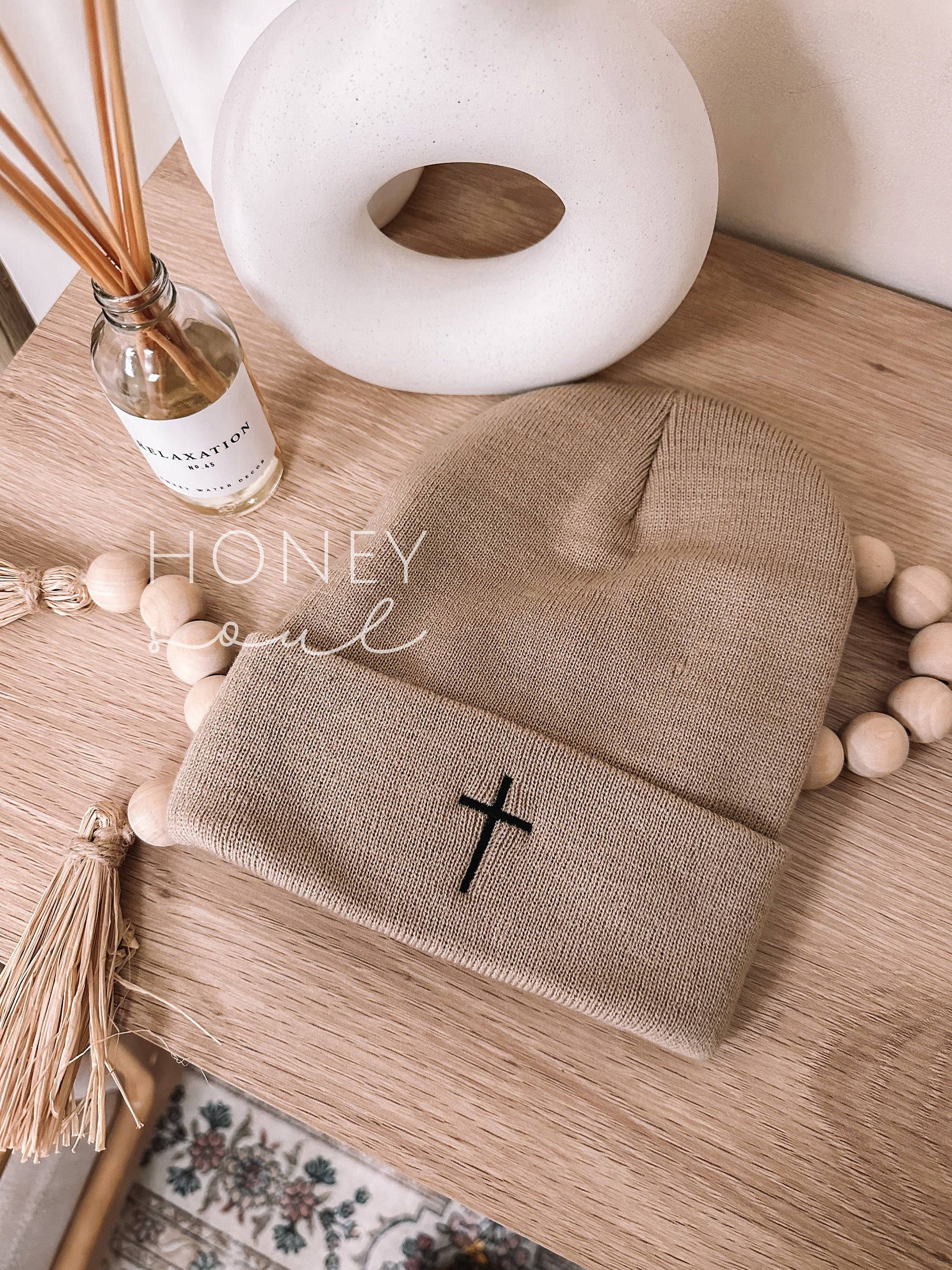 Embroidered Cross Knit Beanie || Cross Embroidered Beanie || Embroidered Fall Beanie || Christian Knit Beanie || Christian Beanie