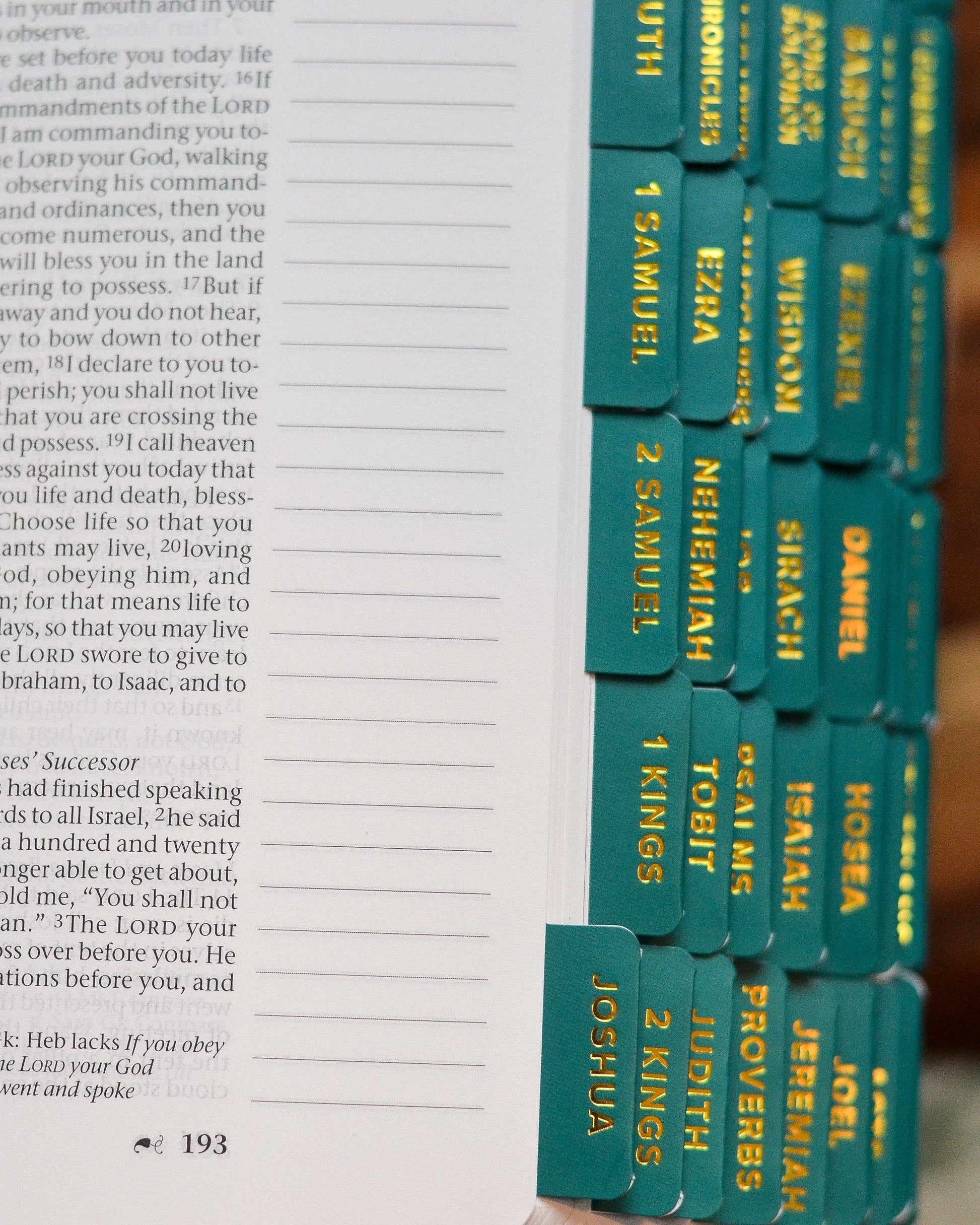 These beautiful emerald-toned tabs with gold foil accents add a touch of elegance to any Bible and are perfect for both men and women. Quickly get to the books you need to get to with our luxurious Bible tabs.