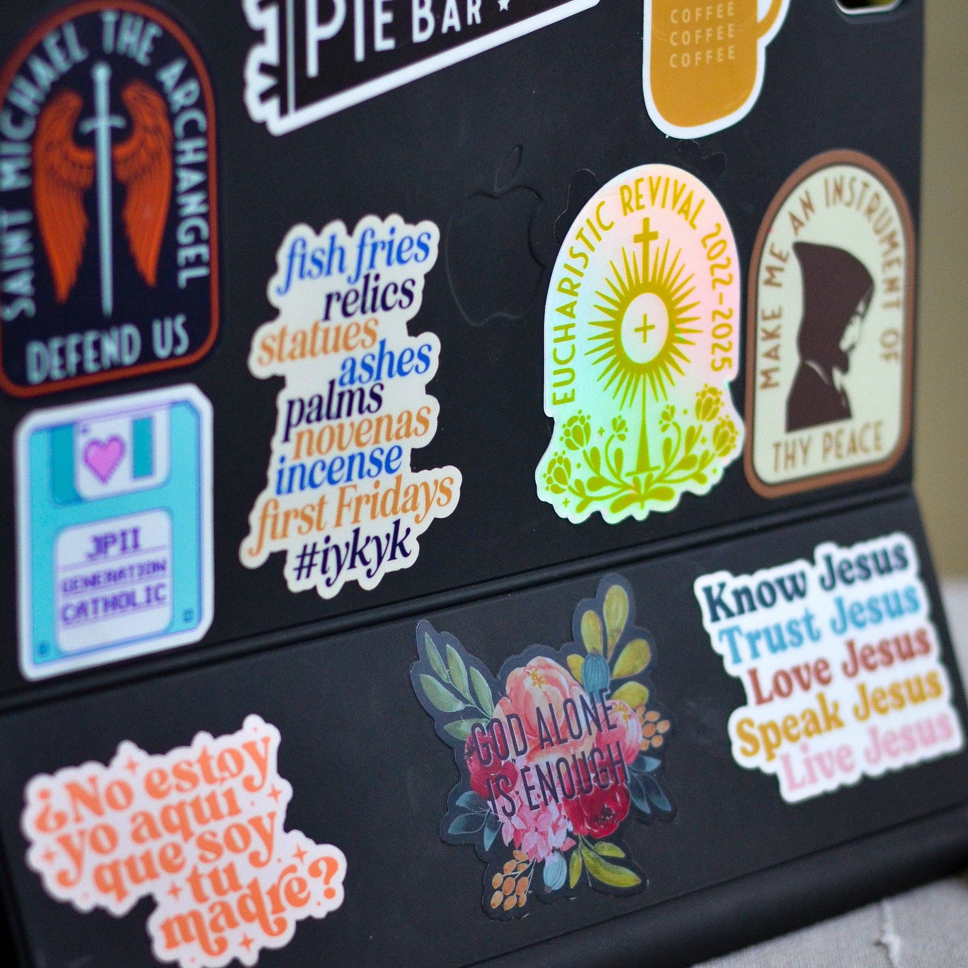 Celebrate and commemorate this initiative with our holographic Eucharistic Revival sticker and a touch of sparkle to your tumbler, water bottle, laptop, or tablet featuring our monstrance design!