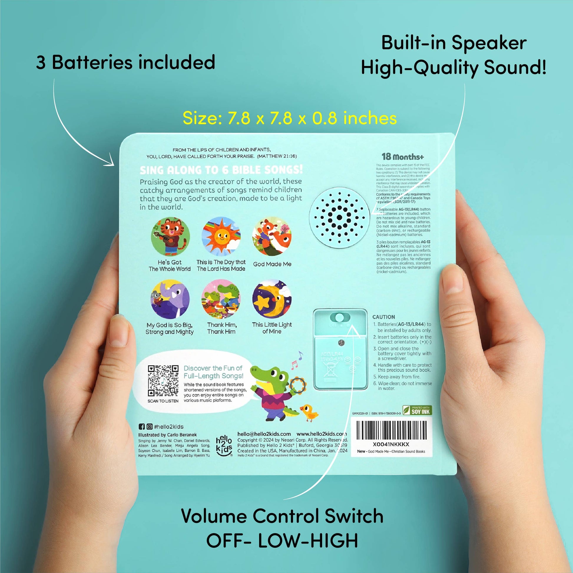 This interactive sound book features lovely illustrations and Bible songs about God. It reminds children that they are also God’s beautiful creation, made to be a light in the world.