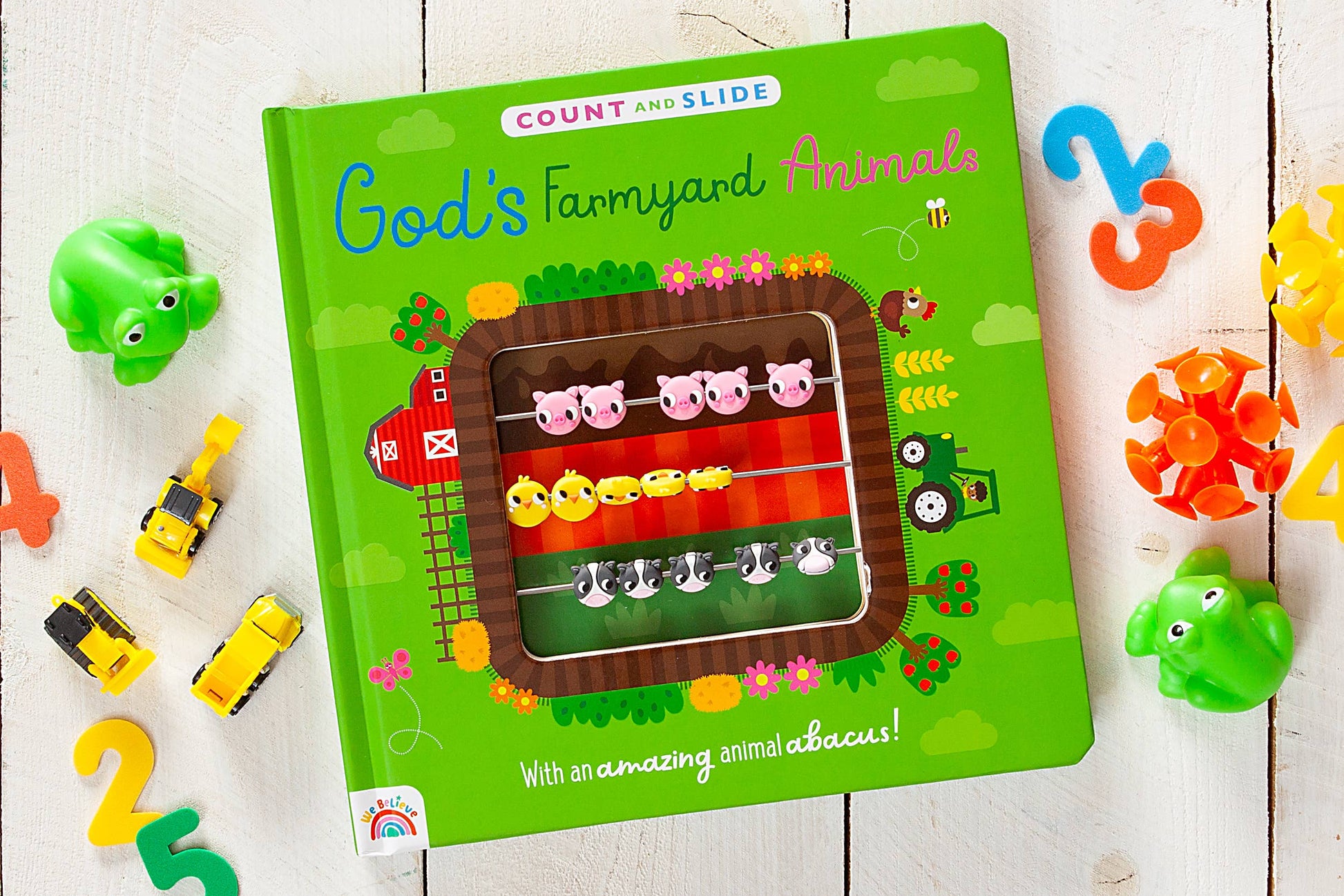 Count and slide with God’s farmyard friends. The built-in abacus in this cute and innovative counting book encourages sensory play and improves hand-eye coordination, while the playful rhyme promotes an early love of reading. It’s the perfect gift to share with your little one and introduce them to early counting skills. Features: hardcover, 10 pages