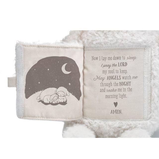 Sweet dreams start with small blessings such as the goodnight prayer lamb from the nighty night collection. Each comes with an embroidered sentiment that make prayer a part of baby’s nightly routine. With soothing colors and soft fabrics, this plush lamb creates cozy bed time experiences for little ones. This unique assortment of faith-based gifts for children and families, combines the whimsical fun of stuffed animals with inspiring and meaningful messages. This squeezable stuffed plush white lamb toy with story flap comes with a soft and cuddly blanket for baby with a prayer message. A coordinated soft lamb features a message in a heart shape encouraging them to open belly flap to read the full prayer. Sentiment: "our goodnight prayer. Now i lay me down to sleep. I pray the lord my soul to keep. May angels watch me through the night and wake me in the morning light. Amen." demdaco goodnight prayer lamb by nighty night collection. Made of plush. Surface washable. Measures 11".