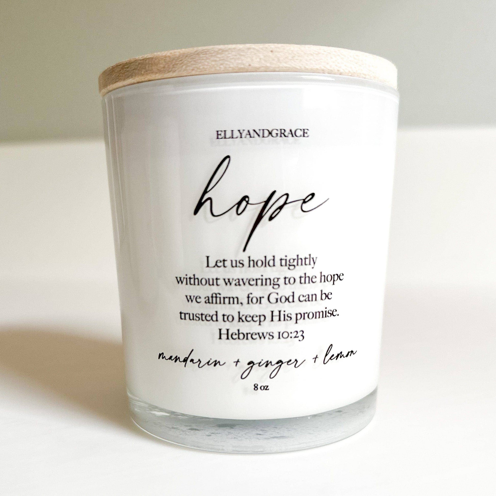 ☑️ Long Lasting - 40+ Hours Burn Time, 8oz ☑️ Modern Look - Sturdy Glass Container with Wooden Lid☑️ Made with 100% Soy Wax & a Cotton Wick☑️ Medium Scented Candle This candle is designed to remind you to hold fast to the hope that you have in God, even in the midst of difficult circumstances.