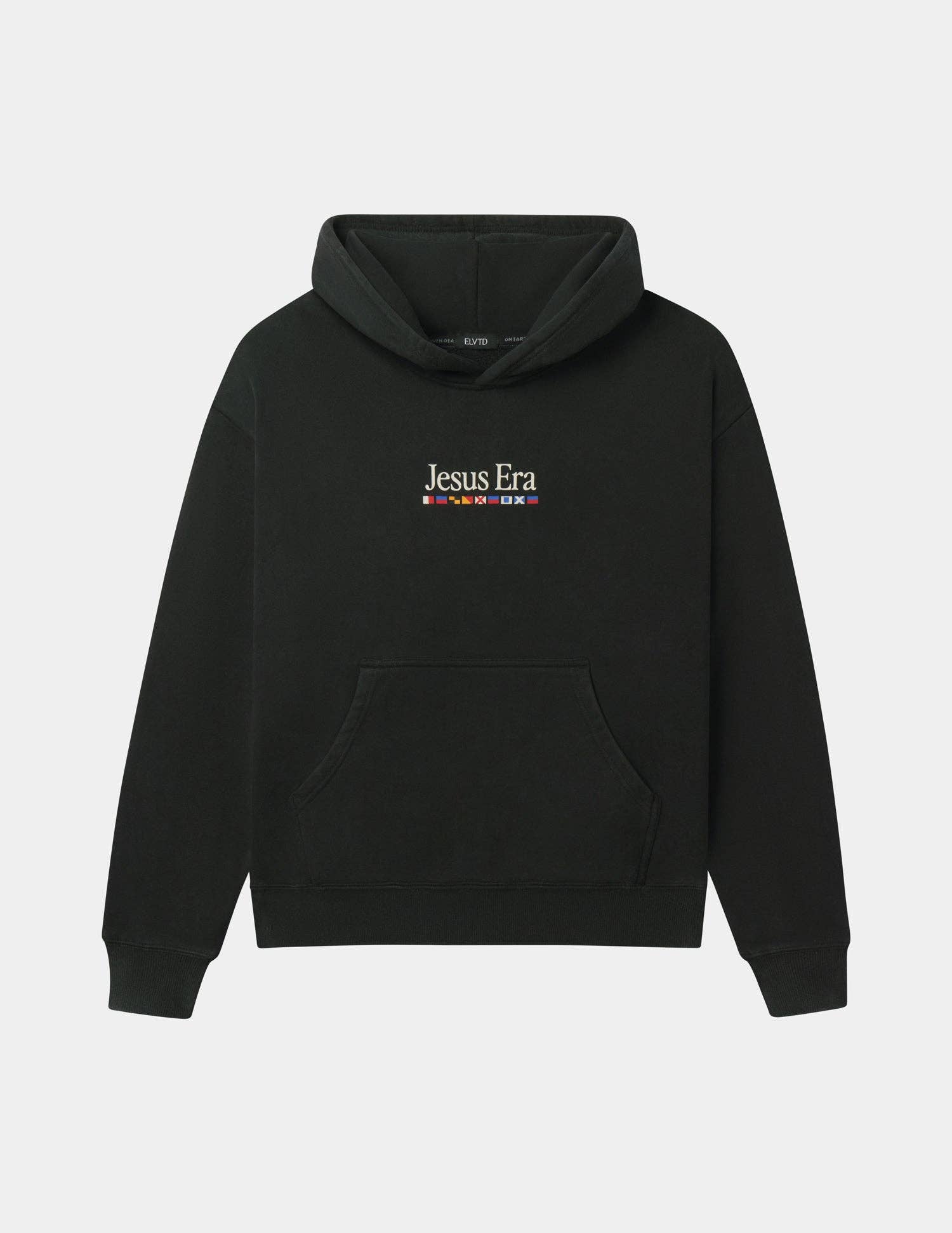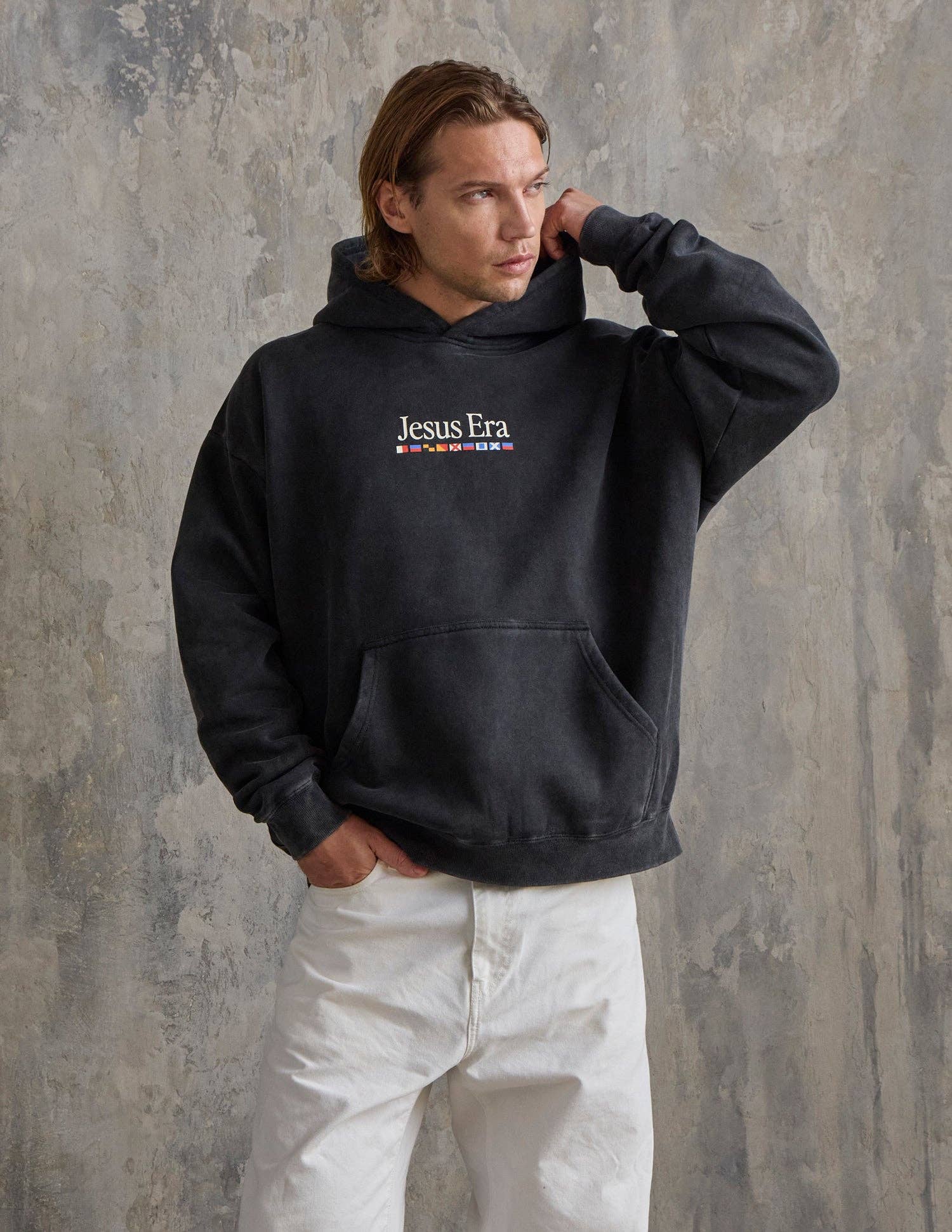 Our Jesus Era Hoodie in nightfall. 100% premium combed cotton. 420gsm. Jesus Era front and back print.