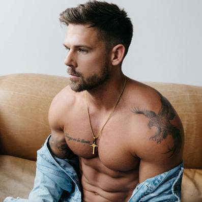 Note that how where the cross will rest on your chest depends on your height and neck thickness.