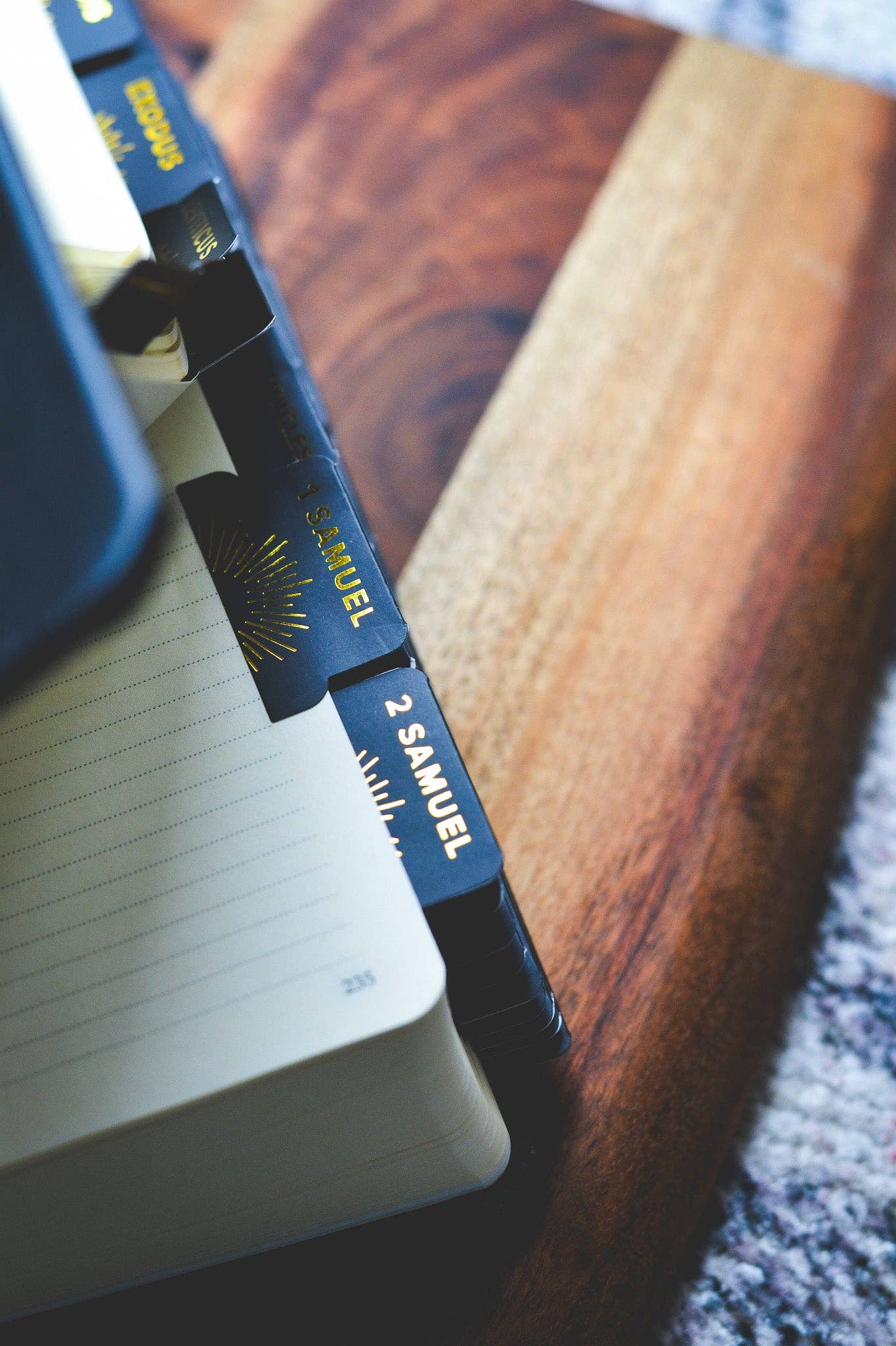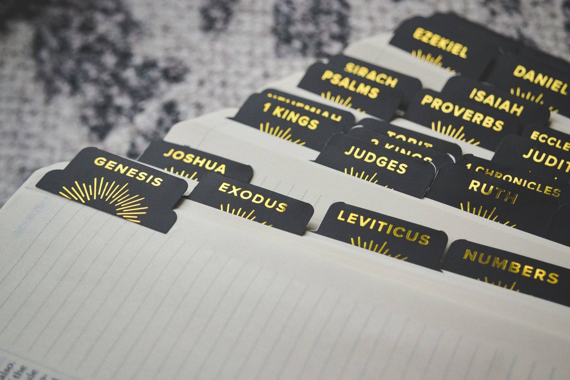 These beautiful black tabs with gold foil accents add a touch of elegance to any Bible and are perfect for both men and women. Quickly get to the books you need to get to with our luxurious Bible tabs.