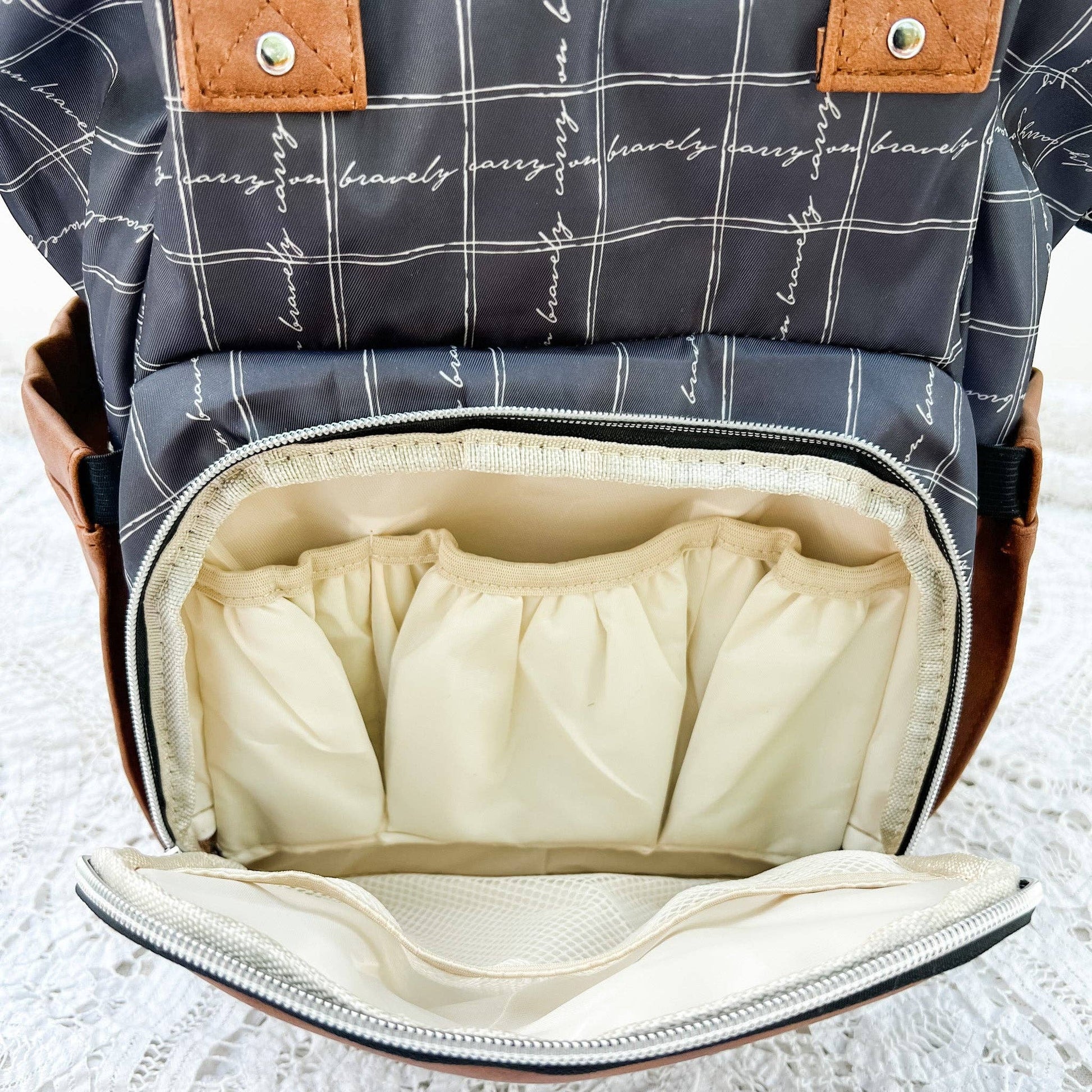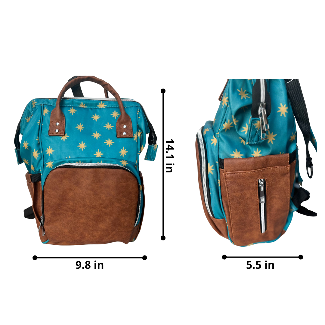 Made of durable high-quality fabric, this diaper bag has it all! The faux leather perfectly accents the water-resistant wipeable Guadalupe Stars and St. Zelie patterns. This bag is the perfect size for holding all baby's essentials while you're on the go, and features: * Backpack straps * Several multi-function pockets * Insulated front pocket for baby's bottles * Side pocket for wipes * Easy zipper access to items at the back of the bag * Stroller straps to easily attach the bag to your stroller. The Our Lady of Guadalupe Stars fabric design allows you to bring Mama Mary along with you in a subtle yet beautiful way. The St. Zelie bag features one of her most famous quotes: “The good Lord does not do things by halves; He always gives what we need. Let us then carry on bravely.”