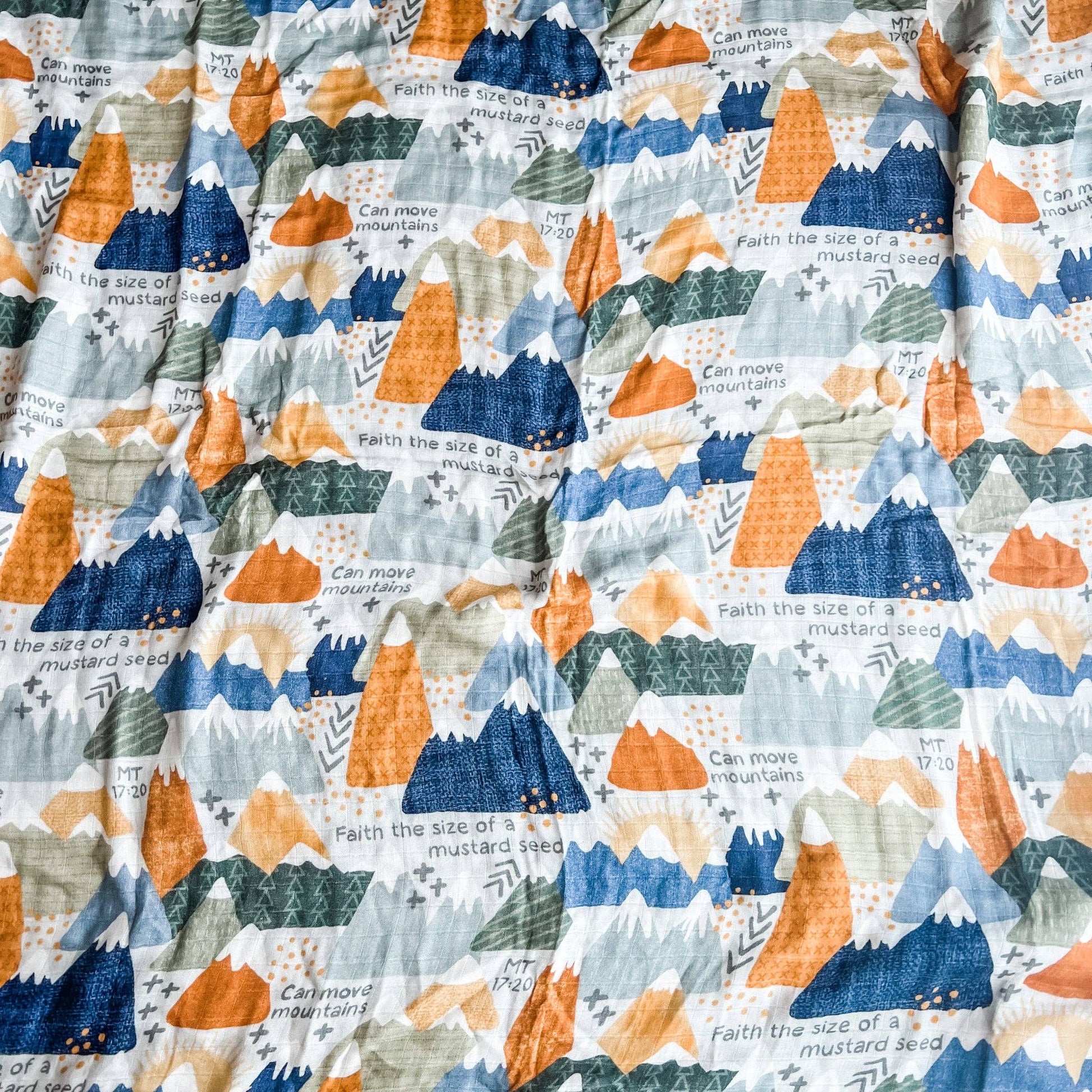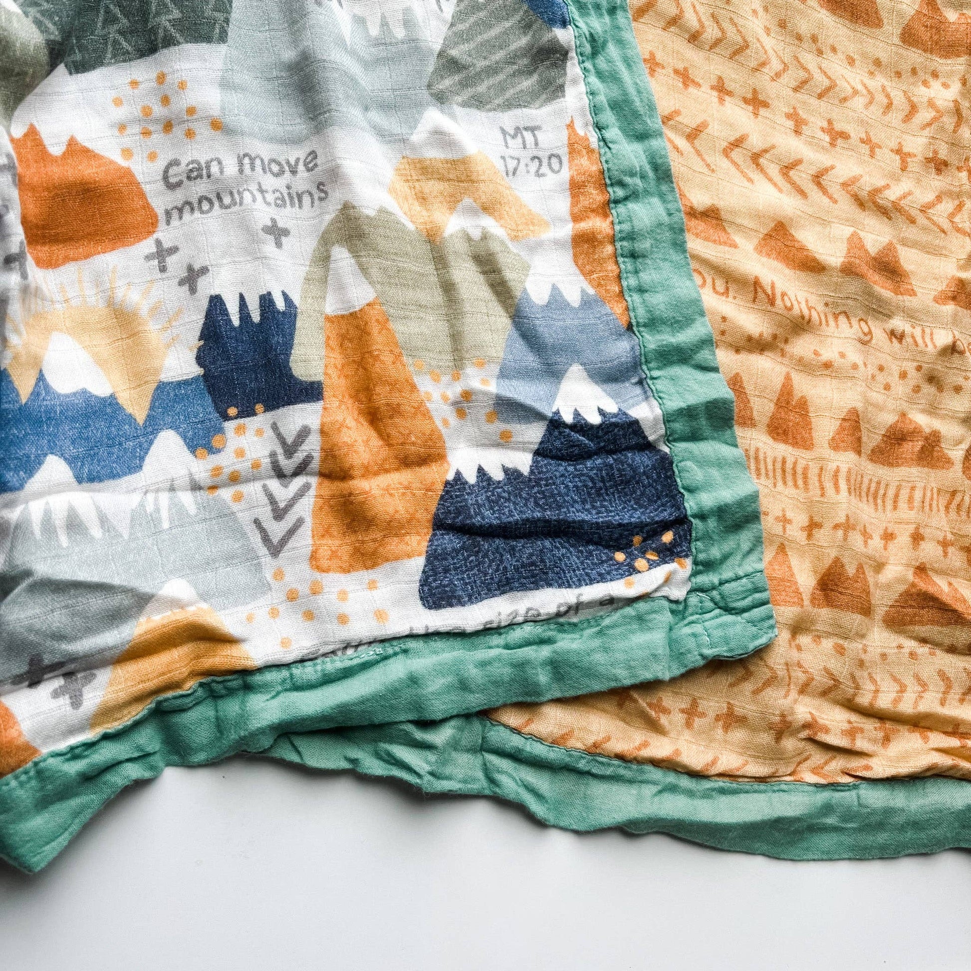 Faith Moves Mountains Luxury Double Sided Muslin Blanket