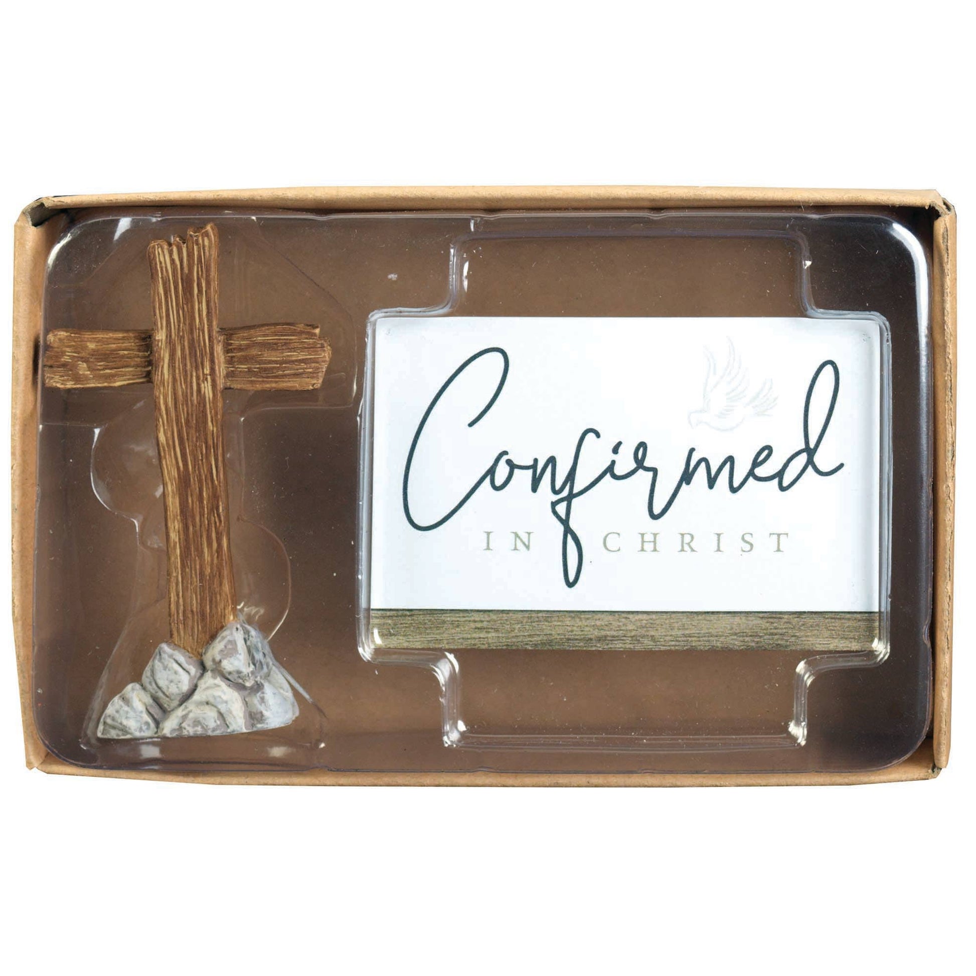 Itty Bitty Blessings Cross With Card In Gift Box; This Little Cross Is A Beautiful Reminder Of Why We Make Our Commitment. At 3in High It Will Fit Just About Anywhere That You Will See It Often. This Boxed Set Also Includes A Card - Front Has Text: Confirmed In Christ, While Back Side Shows: May The Holy Spirit Strengthen Your Life In Christ, Guide You In Following His Way, And Help You To Share Your Faith With The World. Romans 15:13. Attractively Packaged In Brown Kraft Box With Clear Vac Tray And Clear Acetate Lid. Cross Is Resin. Card Is 3x2.