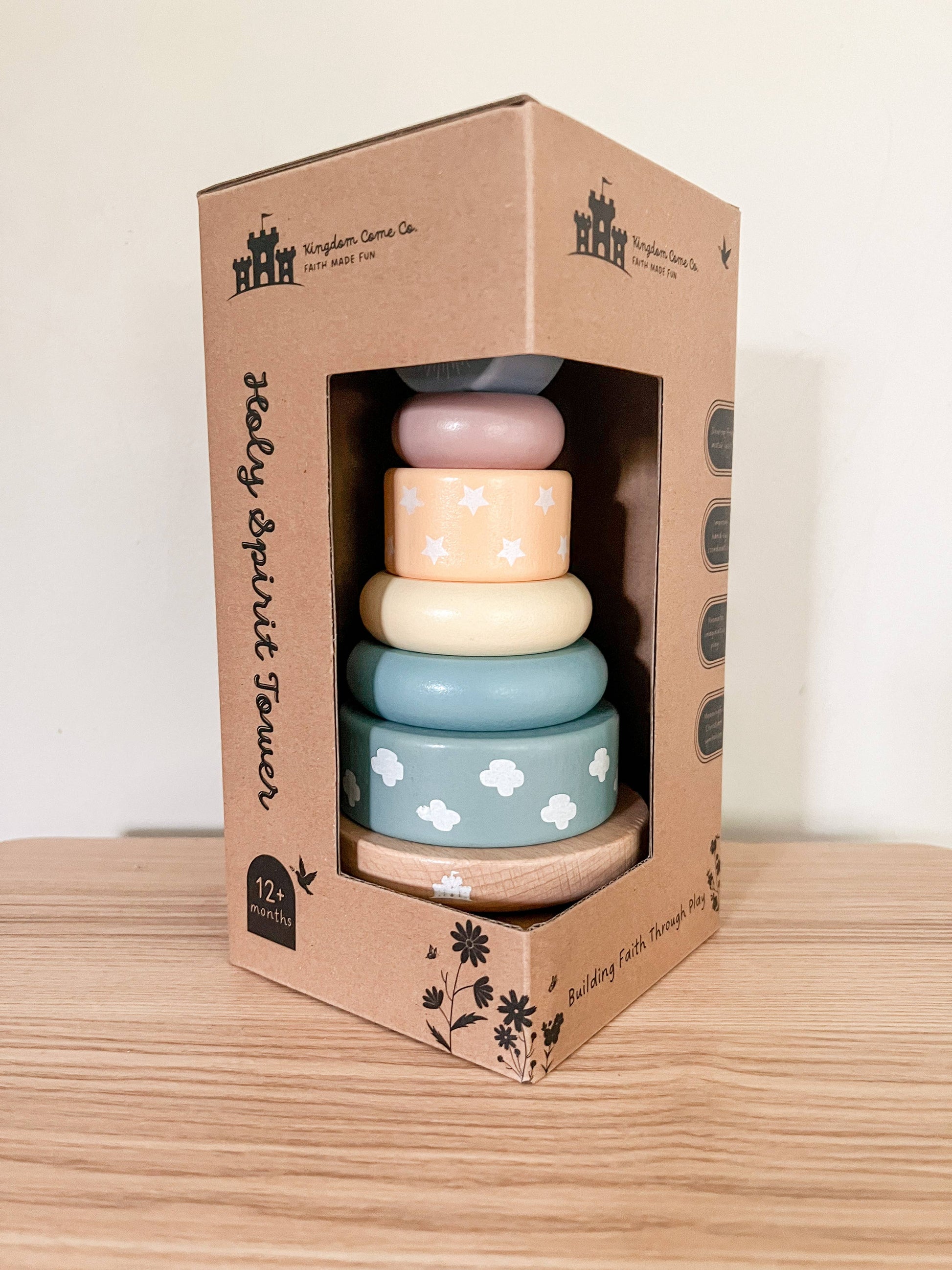 Introducing our beautiful Wooden Ring Stacker Toy, designed to delight and engage your child while also incorporating the symbol of the Holy Spirit dove. Made with high-quality wood and featuring rings of different colors, including one with stars and another with clouds to emulate the sky, this stacker is a perfect addition to any Montessori-inspired toy collection.