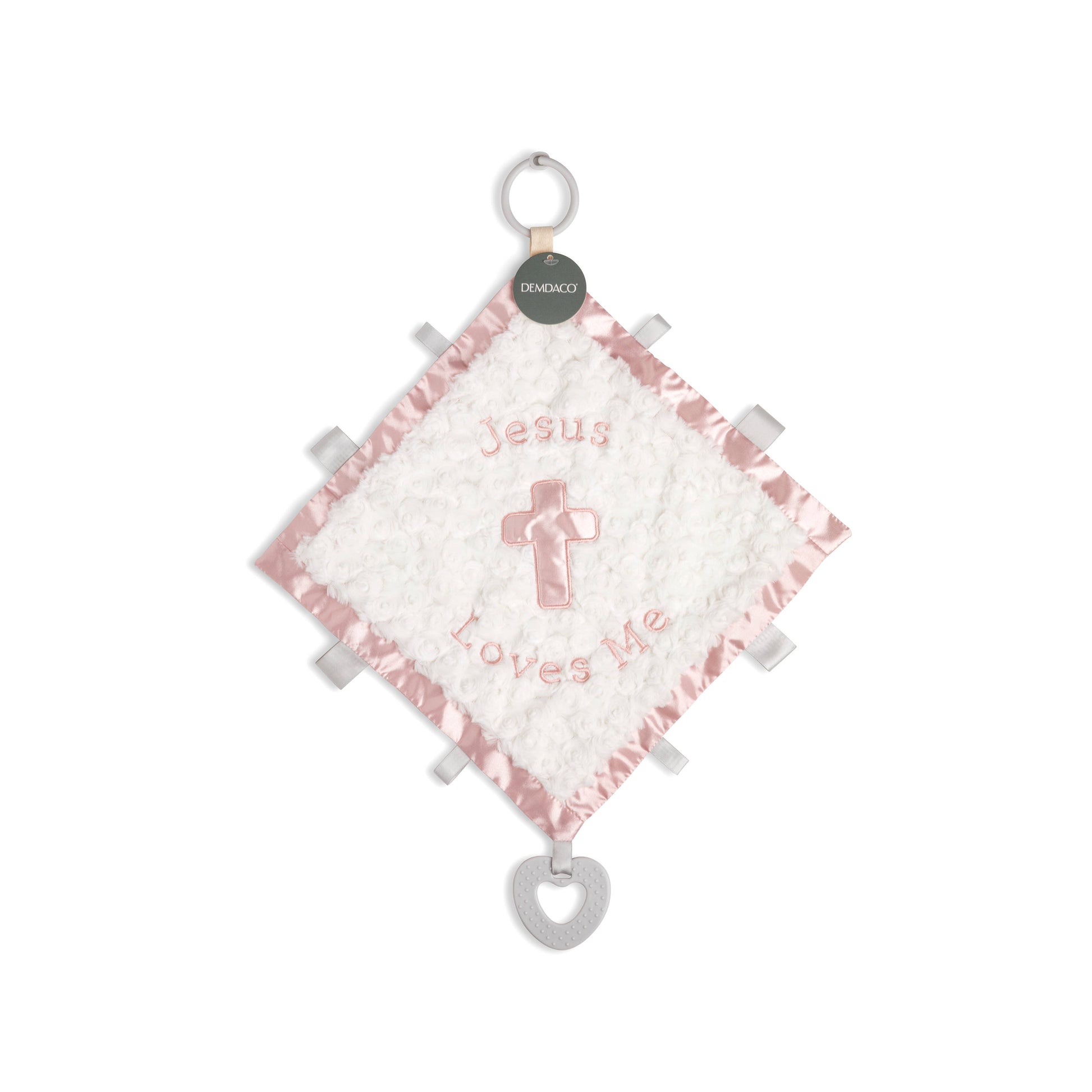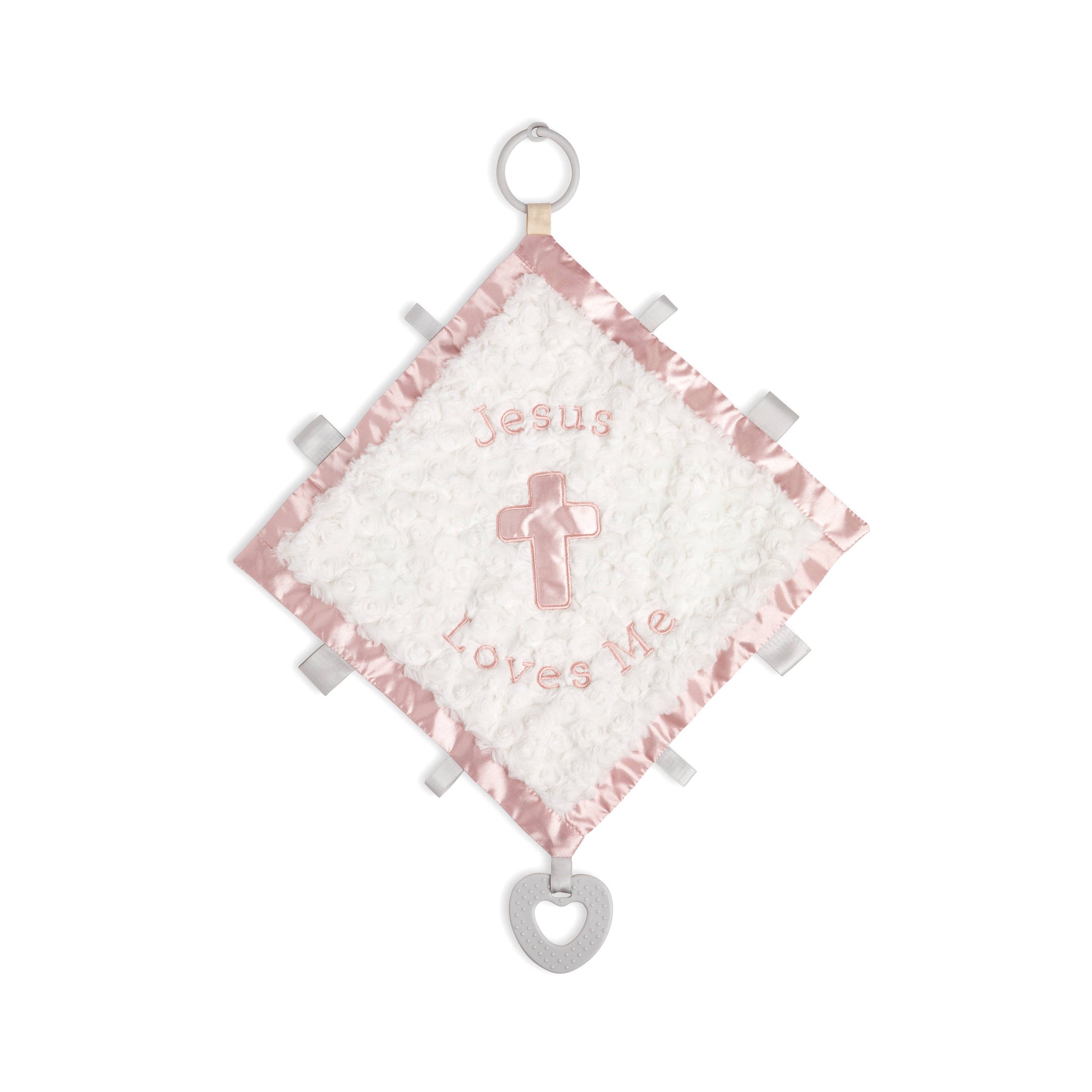 Soft and snuggly, the Jesus Loves Me Activity Blankie - Pink from the Activity Blankie collection is sure to be baby's new favorite toy! With a sweet sentiment on the front that reads, "Jesus loves me," this pink, baby blanket will quickly become a playtime essential.