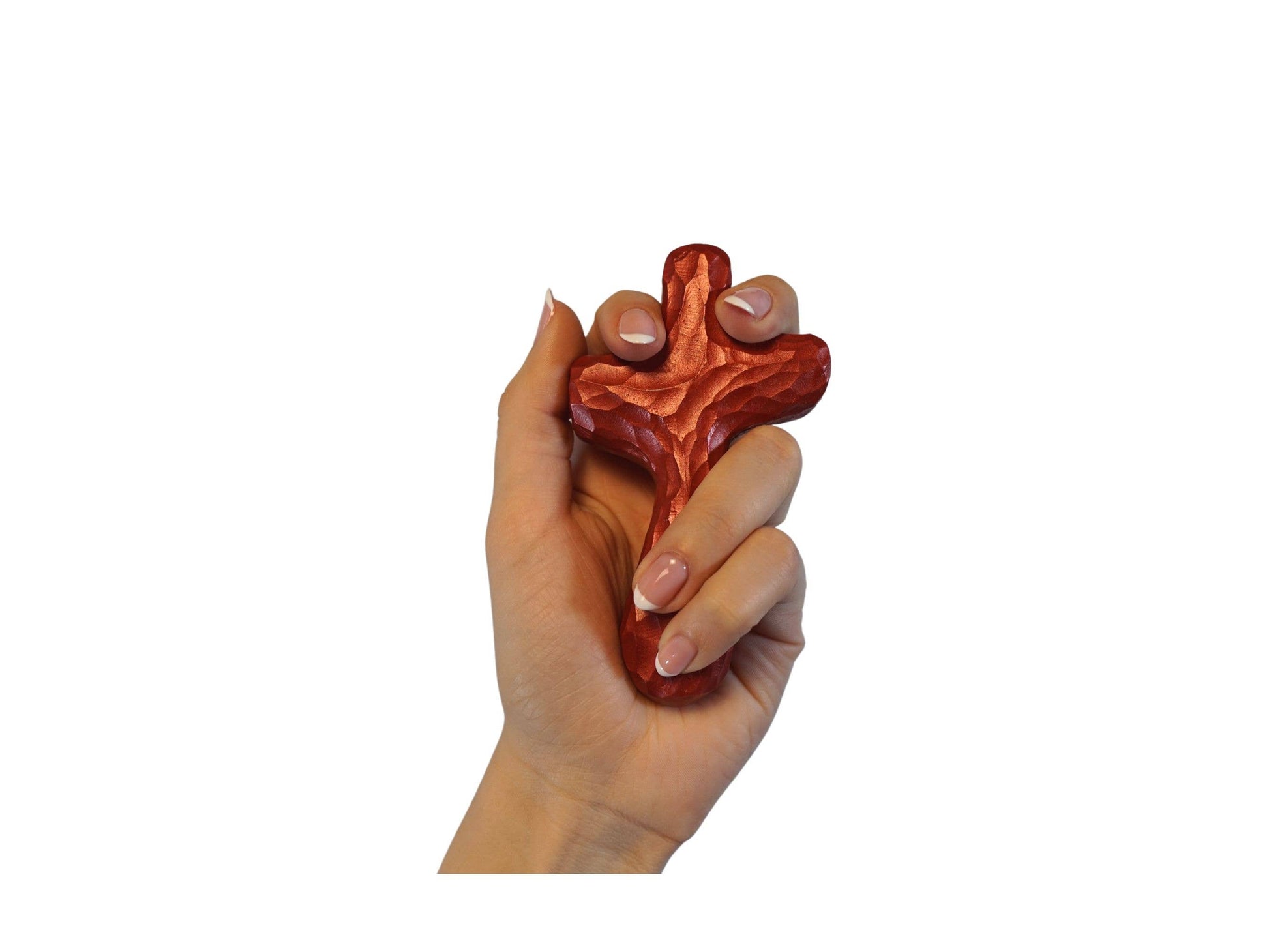These resin-based crosses fit perfectly in the palm of your hand and are hand-painted to provide a nice selection of colors. The cross measures 4 1/2 inches by 2 1/2 inches.