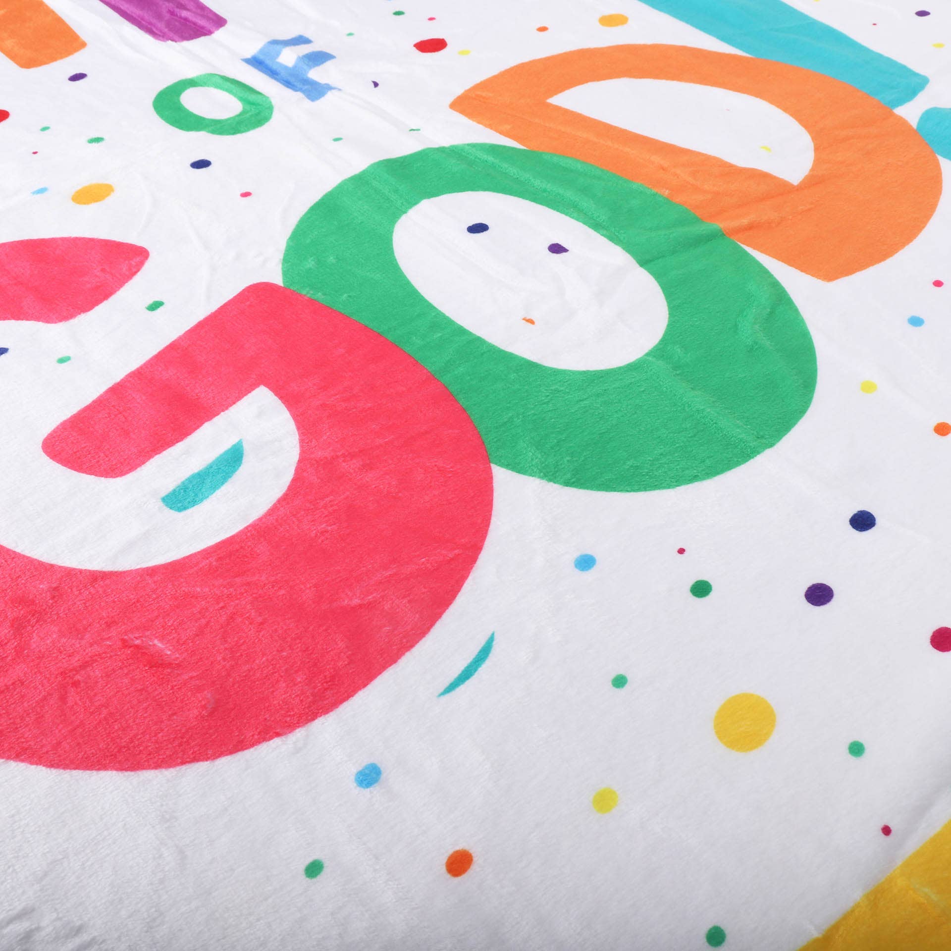 Celebrate faith and comfort with the Kid’s Throw – Child of God. This bright and cheerful fleece blanket is designed with colorful polka dots scattered across a crisp white background, creating a playful look kids will love. In the center, bold lettering proudly declares “Child of God!”—a faith-based message that reminds little ones of their identity and worth in Christ.