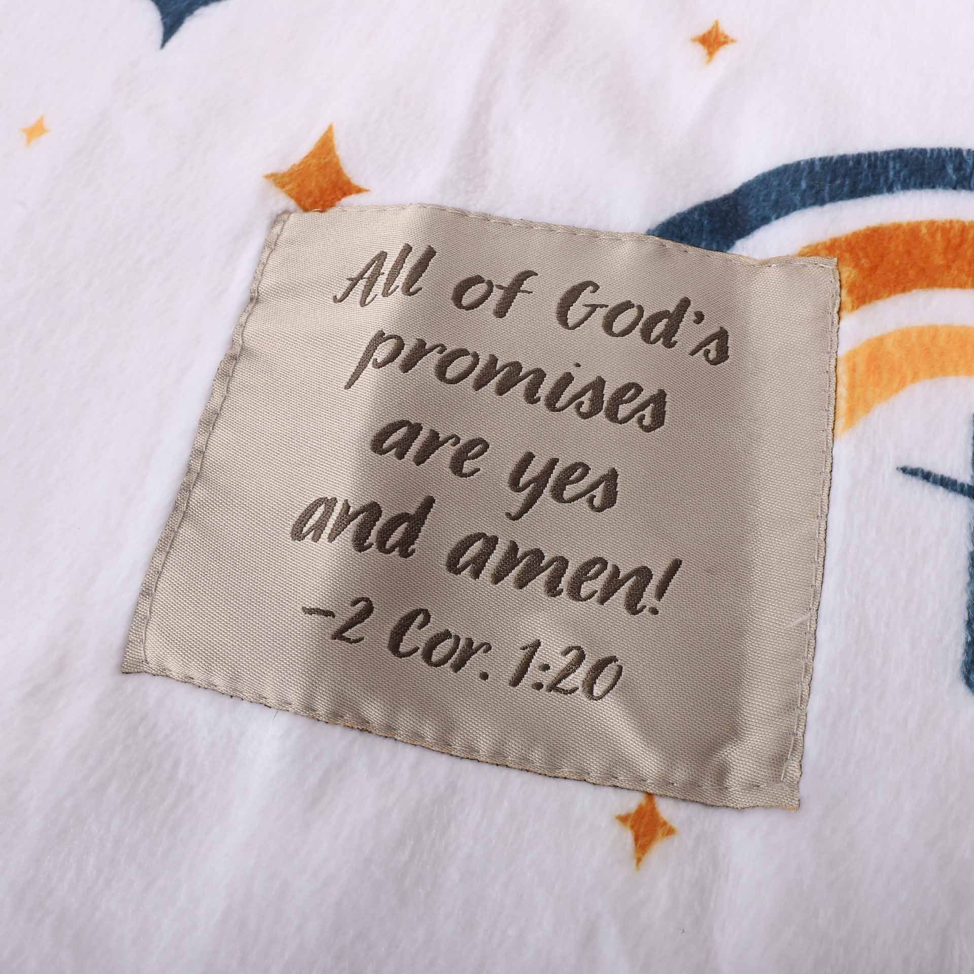 Bring warmth, comfort, and inspiration into your child’s space with the Kid’s Throw – Rainbows. This creme-colored fleece throw features a soft, neutral-toned design filled with rainbows and crosses—symbols of God’s promises and everlasting faithfulness. In the bottom corner, a brown patch boldly states, “All of God’s promises are Yes and Amen – 2 Cor. 1:20”, making this Christian throw a meaningful reminder of God’s Word. Crafted from super soft, shed-free fleece, this faith-based blanket is as cozy as it is durable. Its 50" x 60" size is perfect for kids, offering warmth during bedtime, prayer time, or quiet moments of reflection. More than just a blanket, it’s a bold accessory that sparks conversations about God’s promises while wrapping your child in comfort and love. Ideal for Christian families, church communities, and thoughtful gift-givers, this throw makes a beautiful present for birthdays, holidays, or special faith-based occasions.