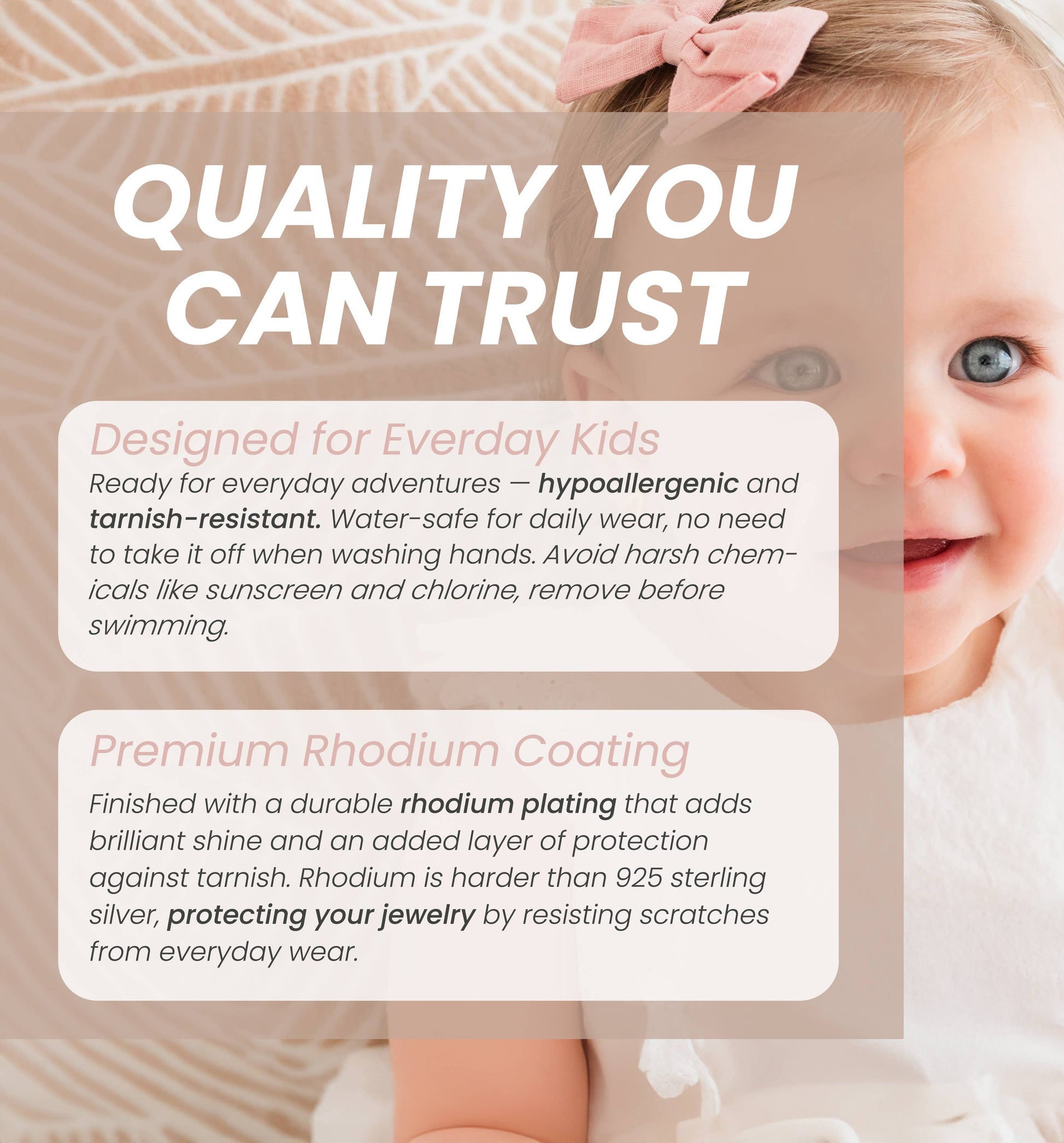 This keepsake bracelet is made with a strand of high-end Austrian simulated pearls and 14K Gold-plated beads accented with a dainty infinity cross charm embellished with sparkling CZs! Beautiful high-quality bracelet designed with sterling silver with 14K gold plating (made with all precious metals). This cross bracelet with pearls makes a very special baptism gift, christening bracelet, dedication gift, or First Communion gift for girls. Each bracelet has an extension chain, as the child grows just move to the next link for a perfect fit.