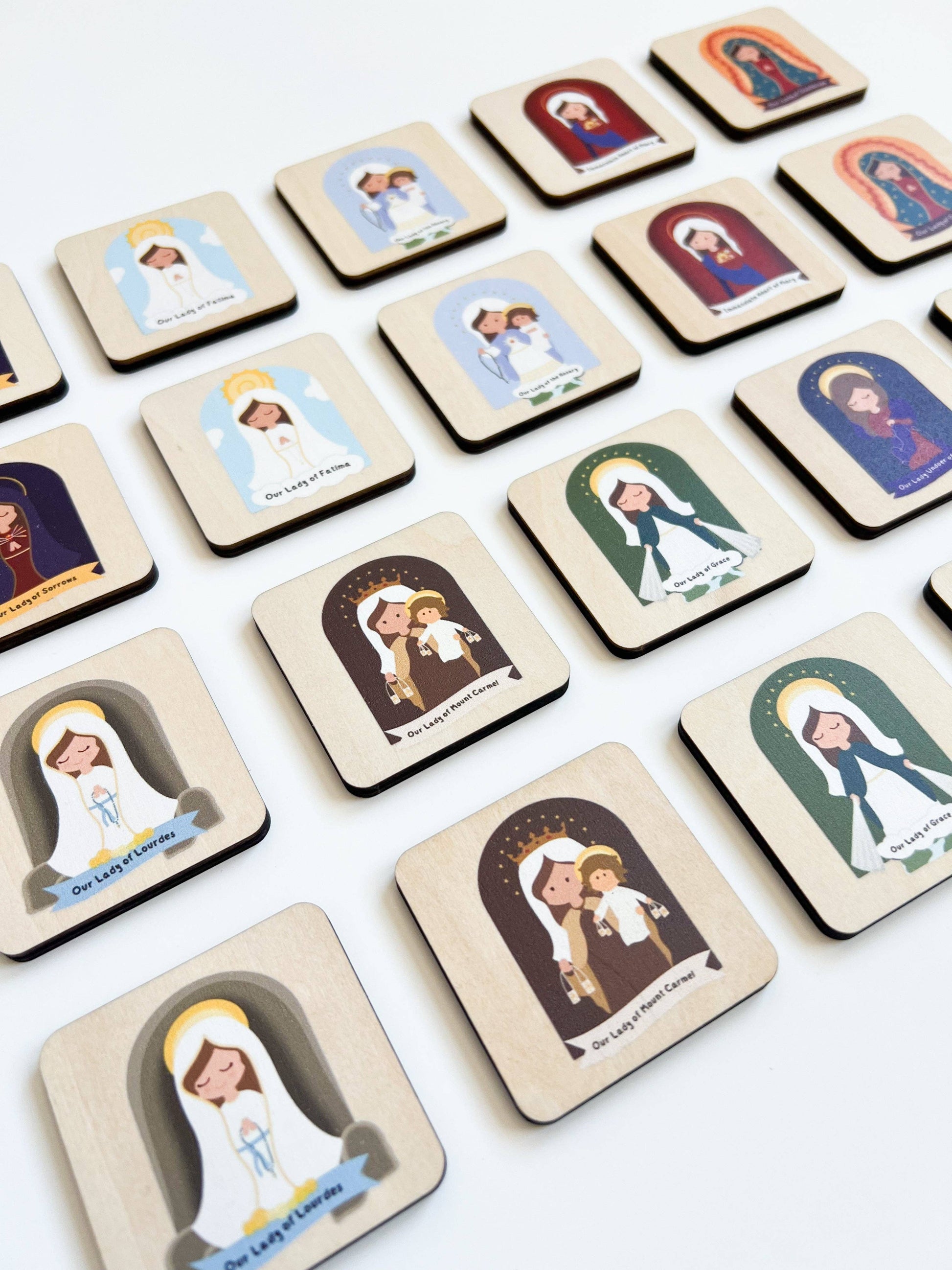 Each tile set represents a beloved Marian title: