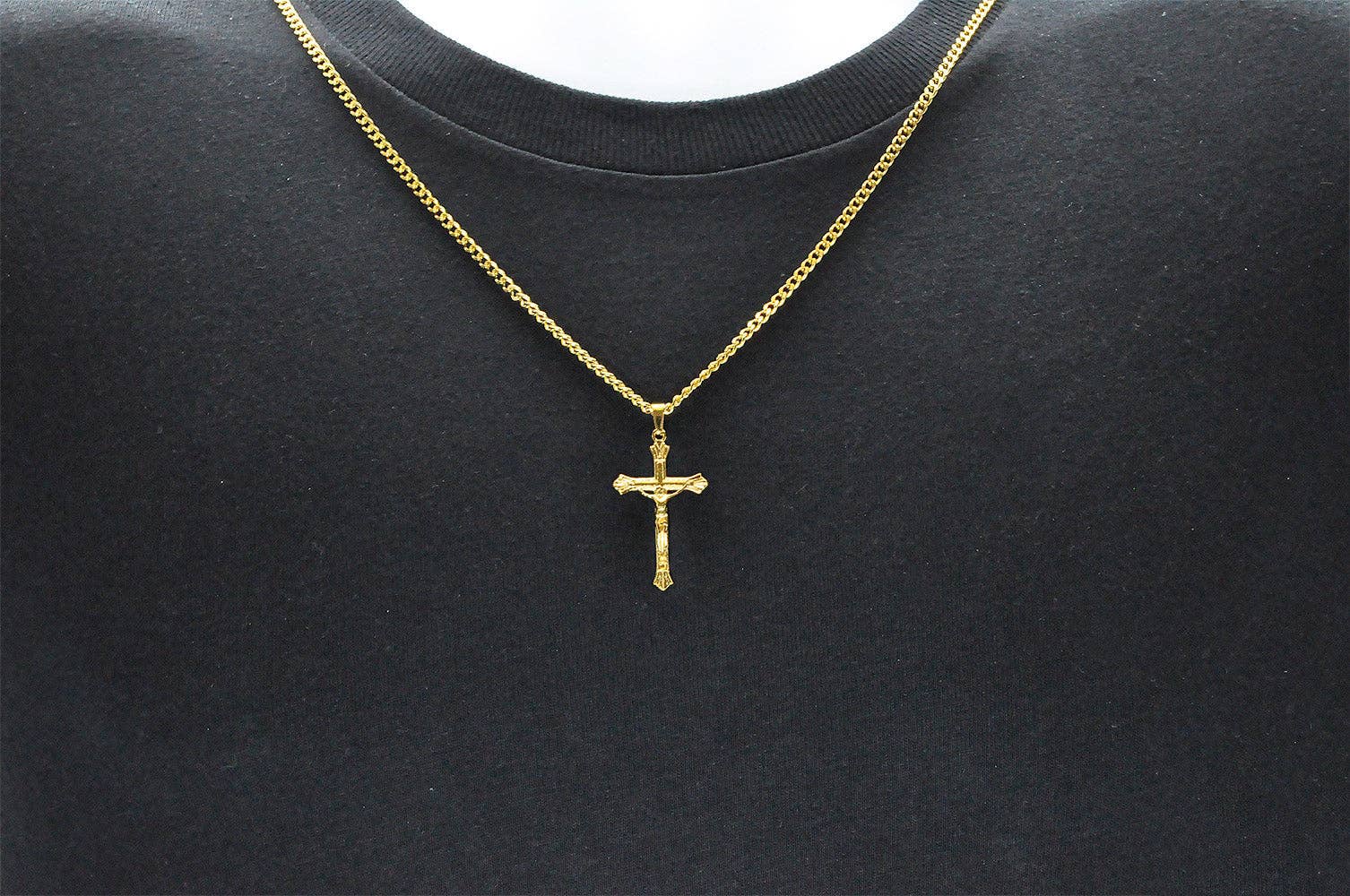 Mens Gold Stainless Steel Crucifix Cross Pendant With 24" Curb Chain