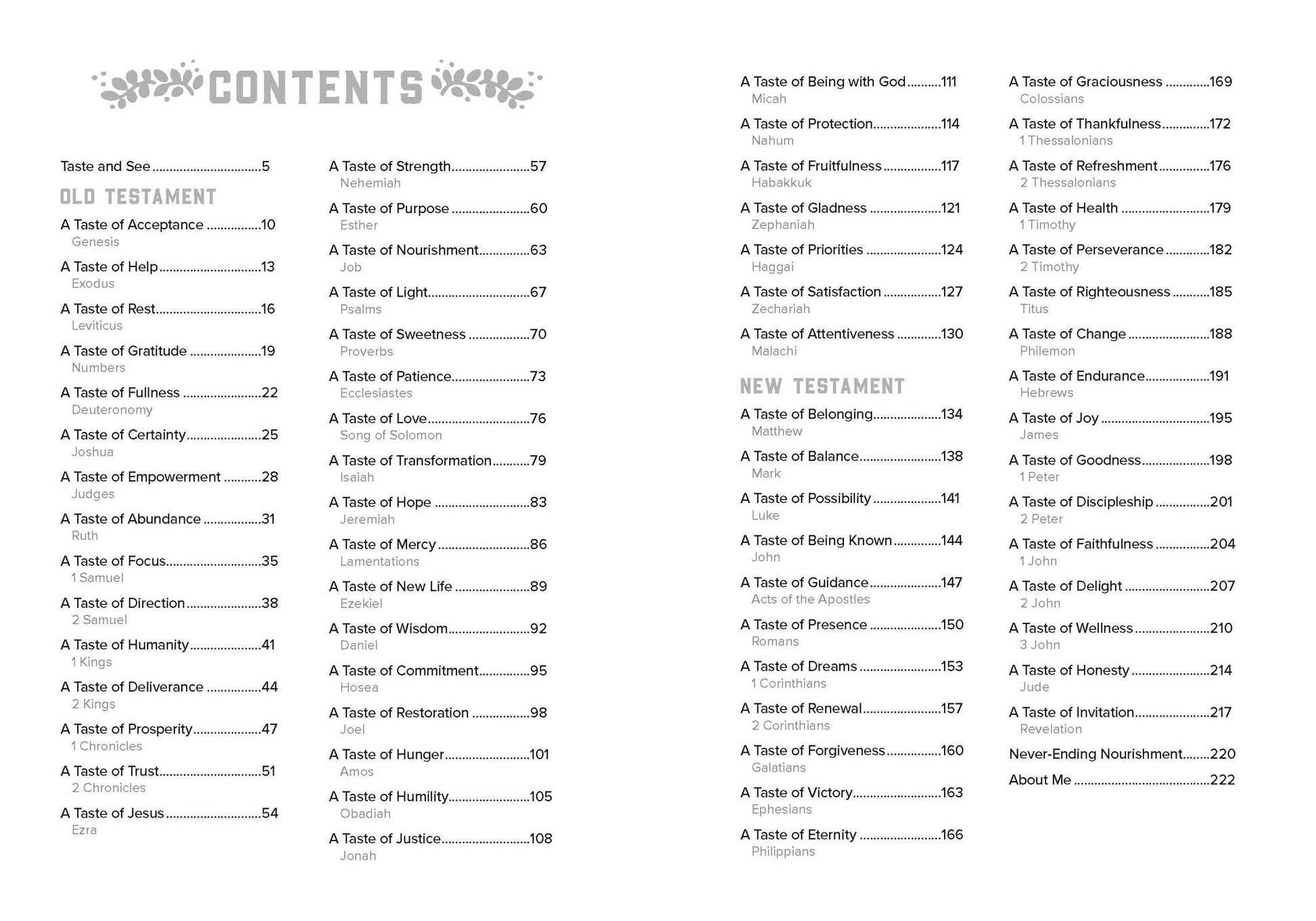 Filled with specially selected Scriptures, rich biblical insight, and personal applications, this devotional helps readers taste and see God’s goodness as they savor bite-sized portions of Scripture from each book of the Bible.