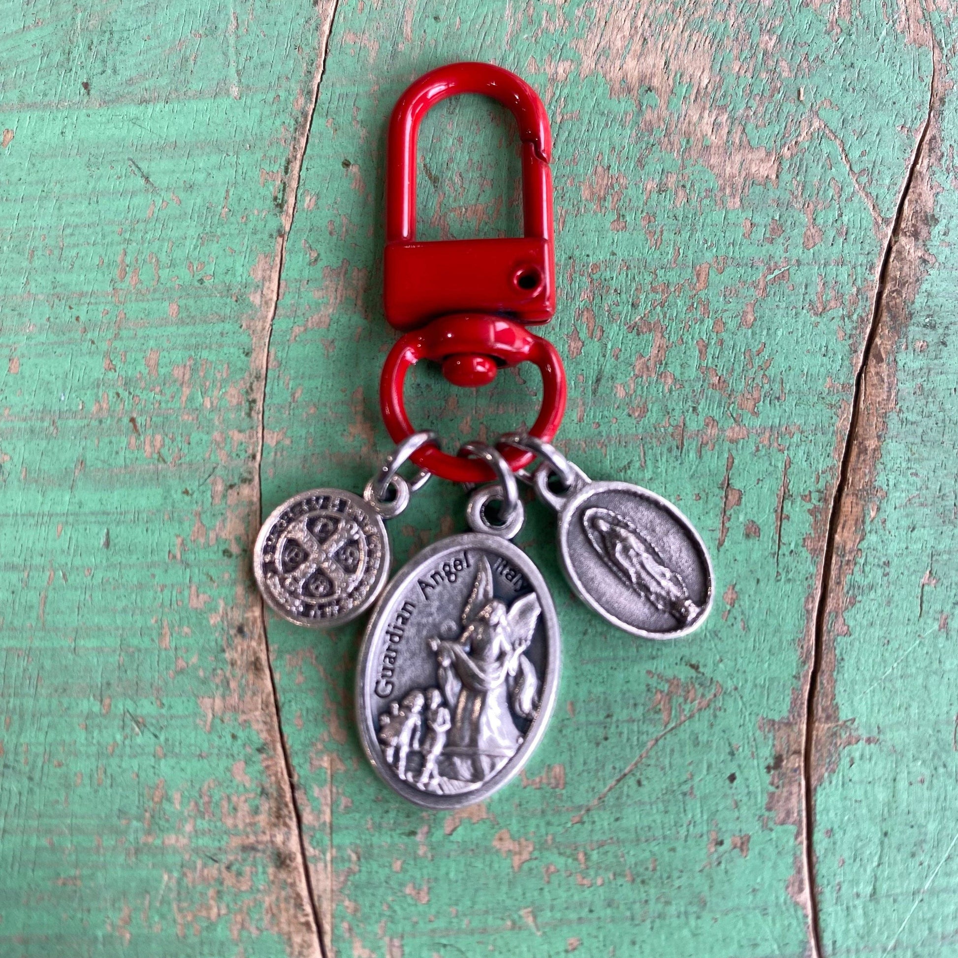 Multicolor Metal Saint Protection Clips of St Micheal/Guardian Angel, Our Lady of Guadalupe, and St Benedict. Available in a variety of colors.