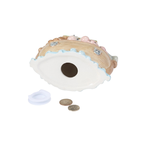 Inspired by Noahs legendary ark, this colorful piggy bank features the smiling faces of Gods creatures! Keeping their first coins and dollars safe, this bank will be treasured throughout childhood and passed down to future generations. The perfect gift for any of baby boys or girls special occasions, from baby showers and first birthdays to baptisms and holidays. Expertly crafted in porcelain and carefully hand painted. Approximately 5.5 inches high.