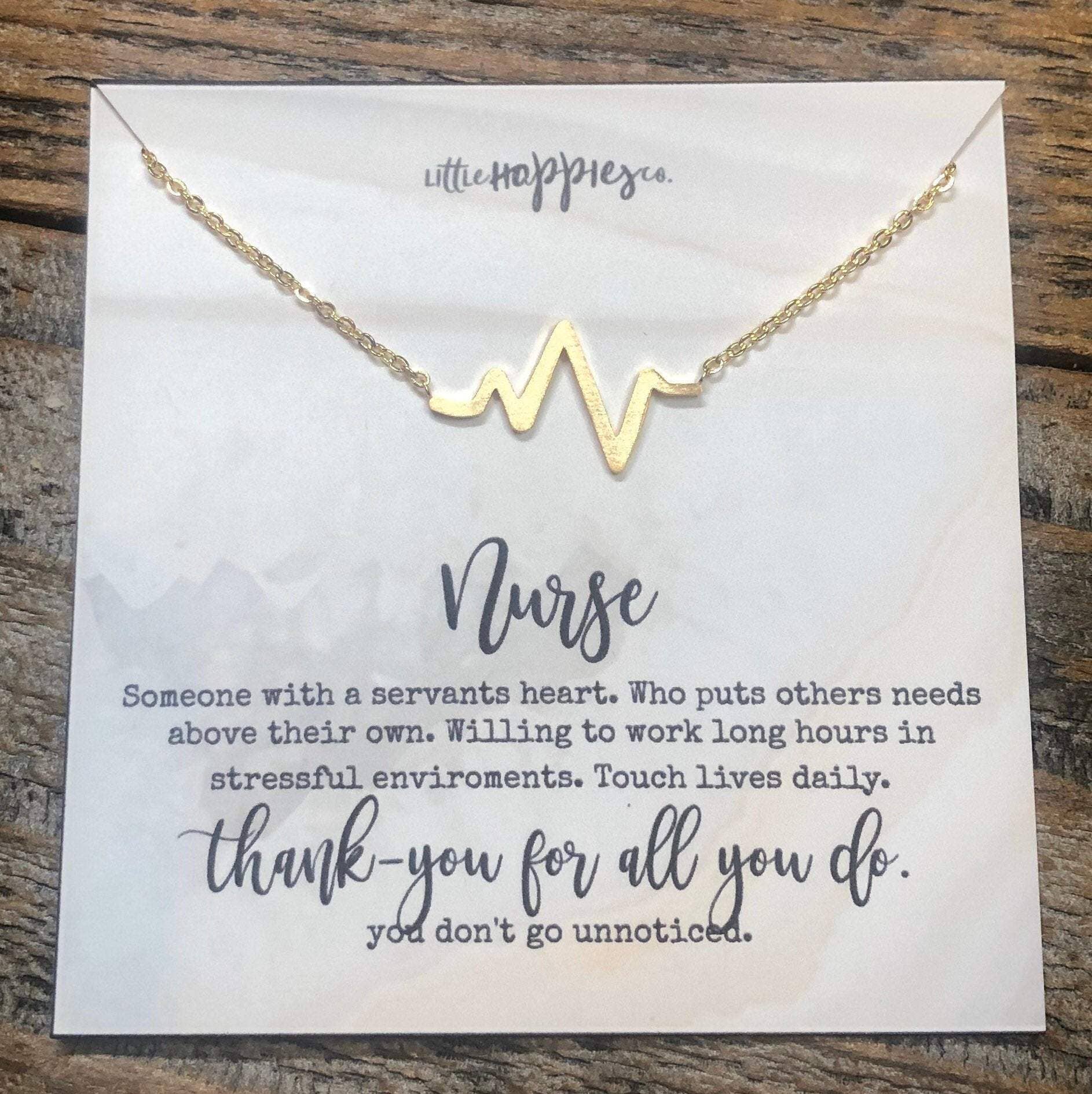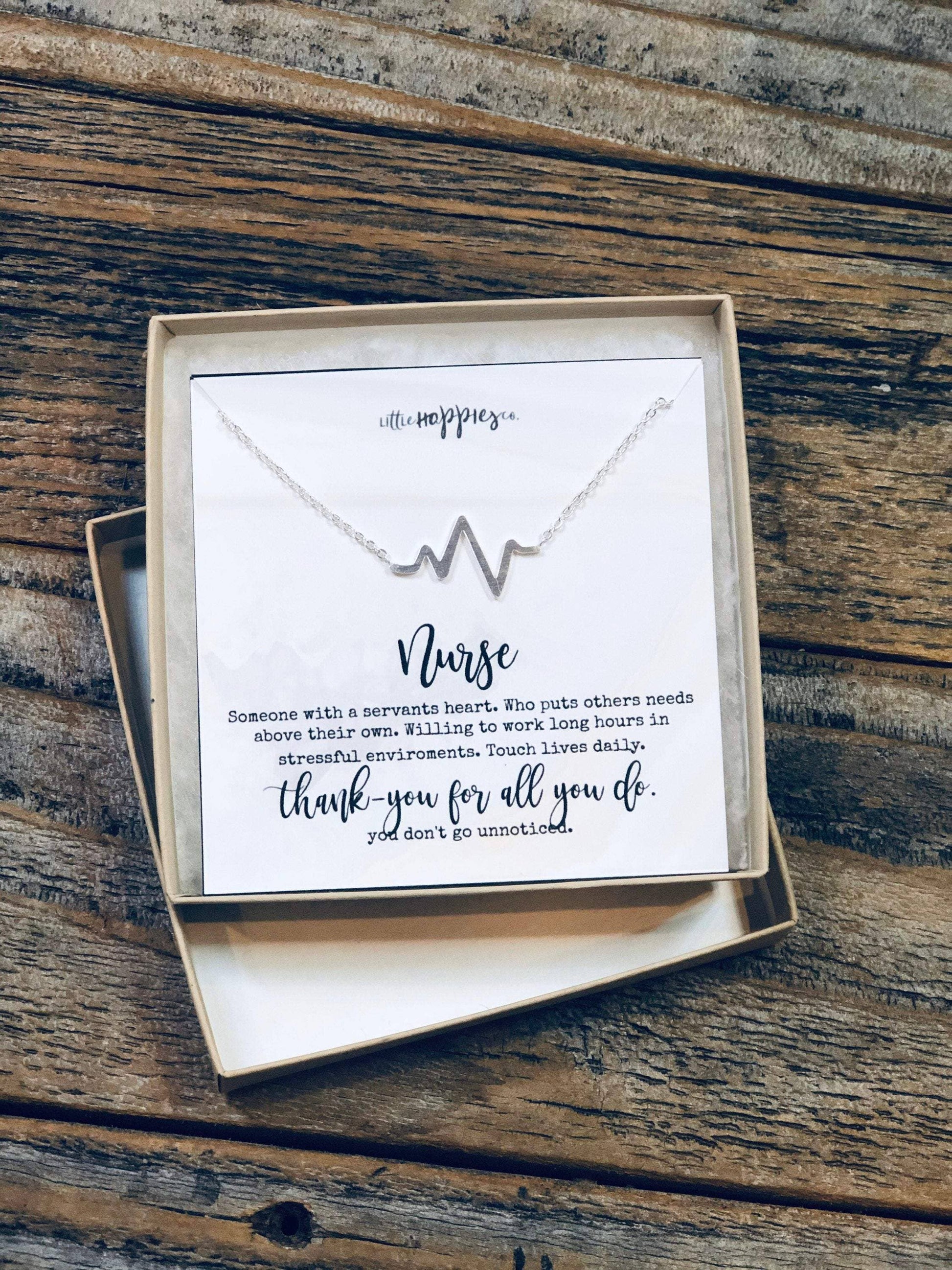 Our nurse necklace shows the true heart of a nurse! Tell your favorite nurse how much you appreciate her with the sweetest heartbeat necklace ever. Jewelry just has a way of showing what words can't. Choose a silver or gold finish. What a perfect idea for... ♥ thank you gifts for nurses ♥ nurse Christmas gifts ♥ gifts for nurses from patients ♥ gift ideas for ICU nurses ♥ anyone with a heart This necklace comes ready-to-give in a super cute gift box. ∙ ∙