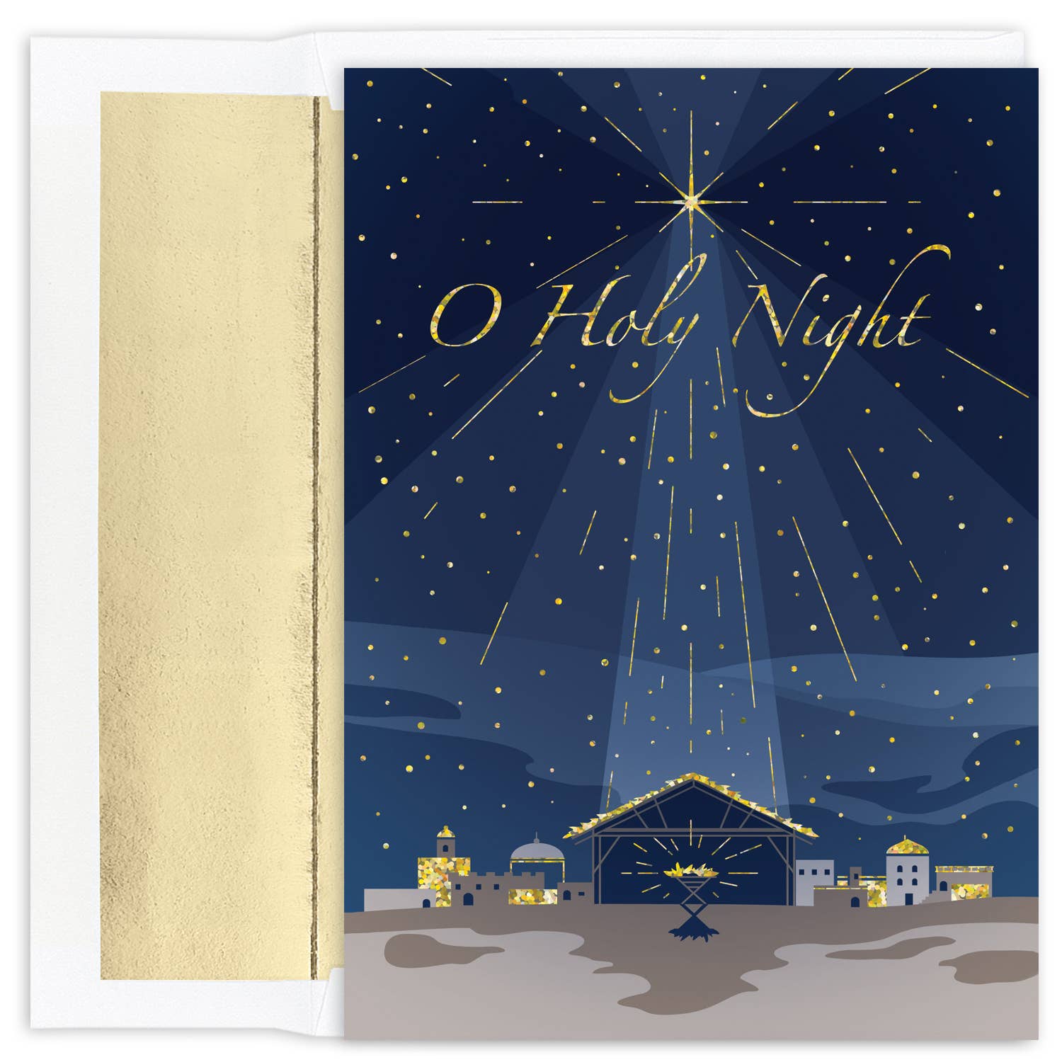 High-end design and finishes featuring gold holographic foil and premium paper stock.