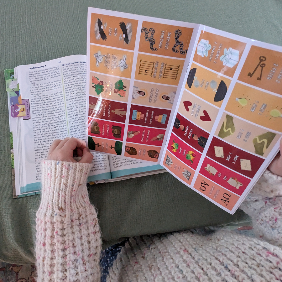 * 72 full-color stickers (the books of 1 Chronicles and 2 Chronicles have one combined sticker)