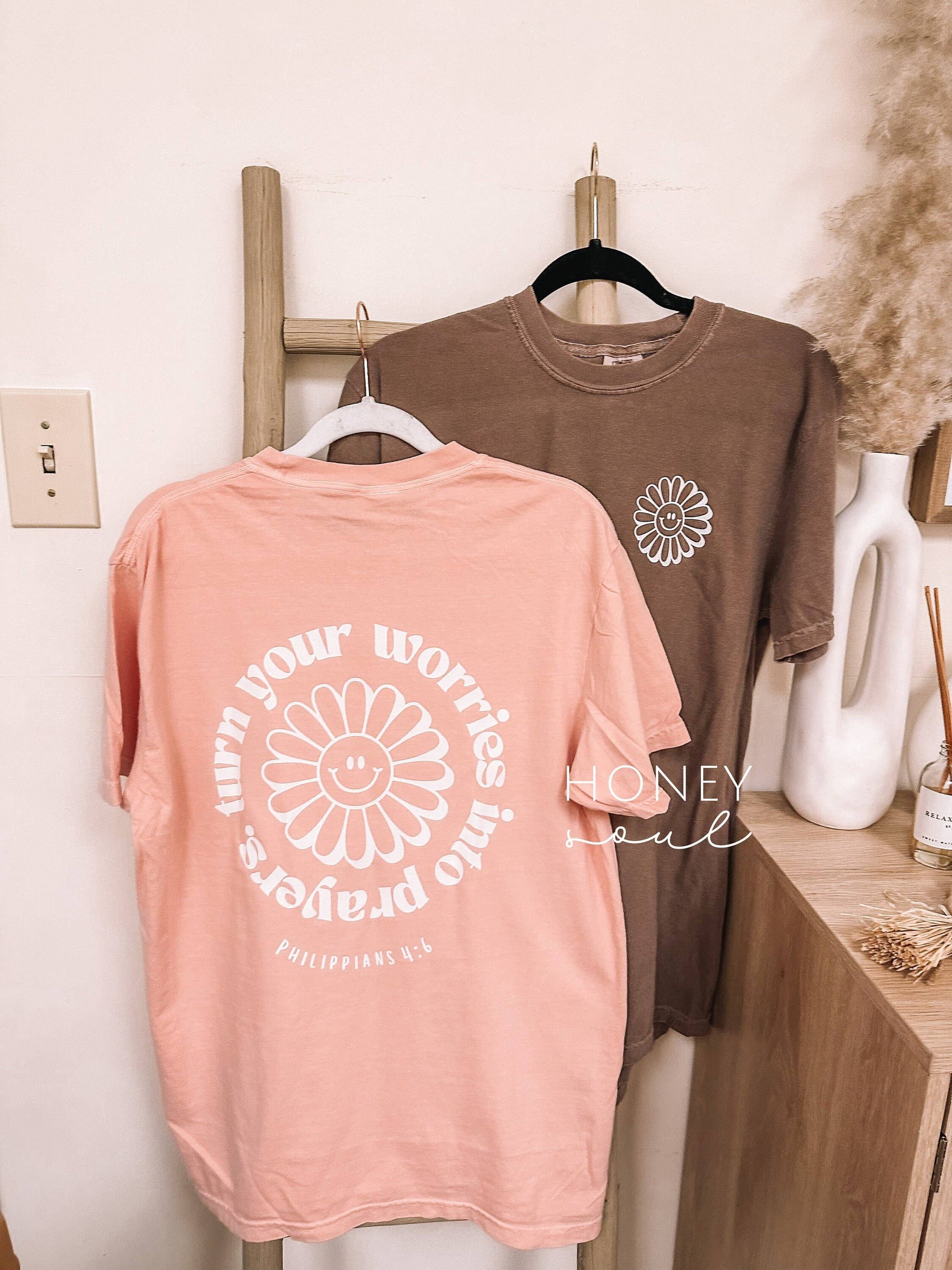 ORIGINAL Turn Your Worries Into Prayers Tee | Screen Transfer Graphic tshirt | Christian apparel Scripture | Bible Verse Christian tee