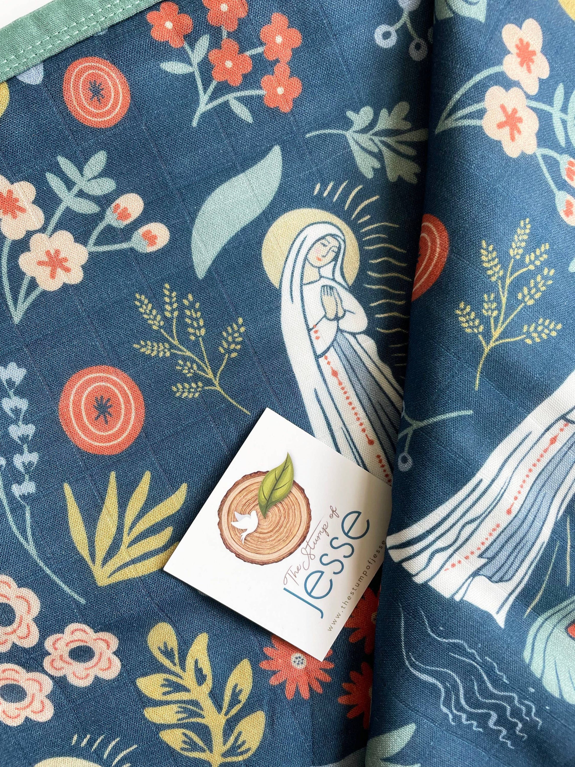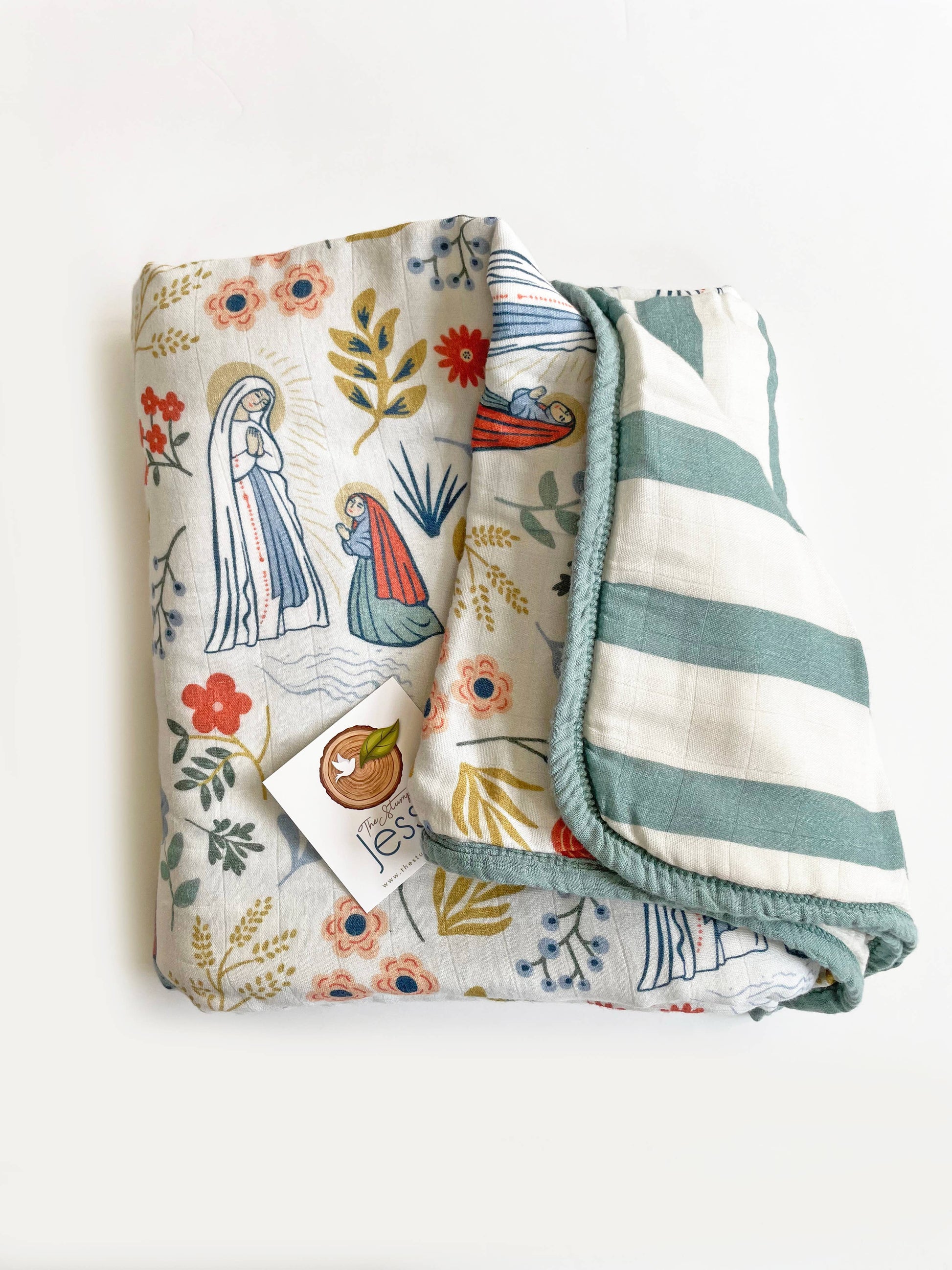 Our Lady of Lourdes and St. Bernadette muslin deluxe quilt