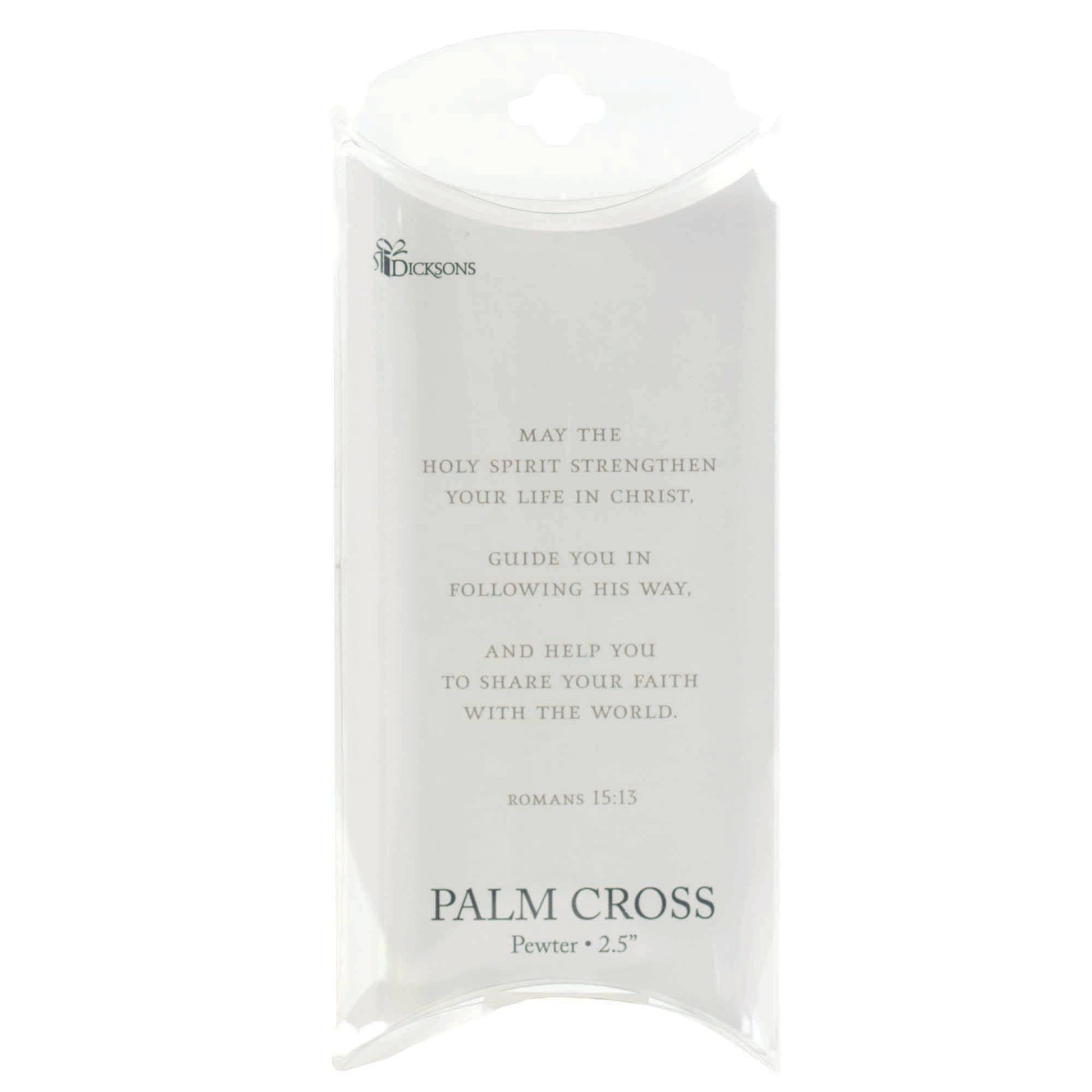 This Unique Little Cross Is Curved To Fit Just Right In Your Palm. Confirmed In Christ Is Printed On The Front Of The Gift Packaging, While The Back Shows: May The Holy Spirit Strengthen Your Life In Christ, Guide You In Following His Way, And Help You To Share Your Faith With The World. Romans 15:13. Made Of Solid Zinc Alloy Metal With A Brushed Pewter Tone Finish. Size Is 2.5 High x 1.5 Wide.